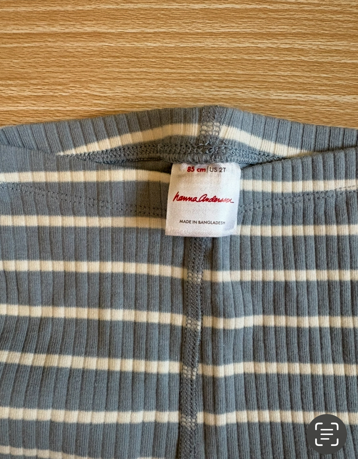 #102 Hanna Anderson Light Blue and White Stripped Ribbed Knit Leggings 2T