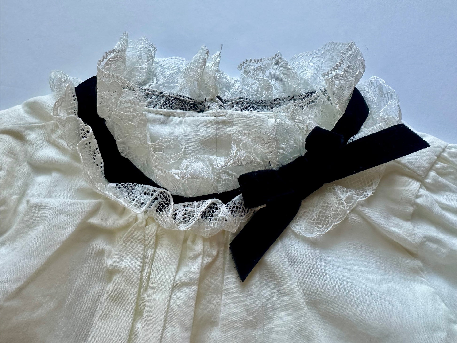 #104 girl 2T Janie and Jack outfit: cream blouse with velour trim and black ruffle skirt