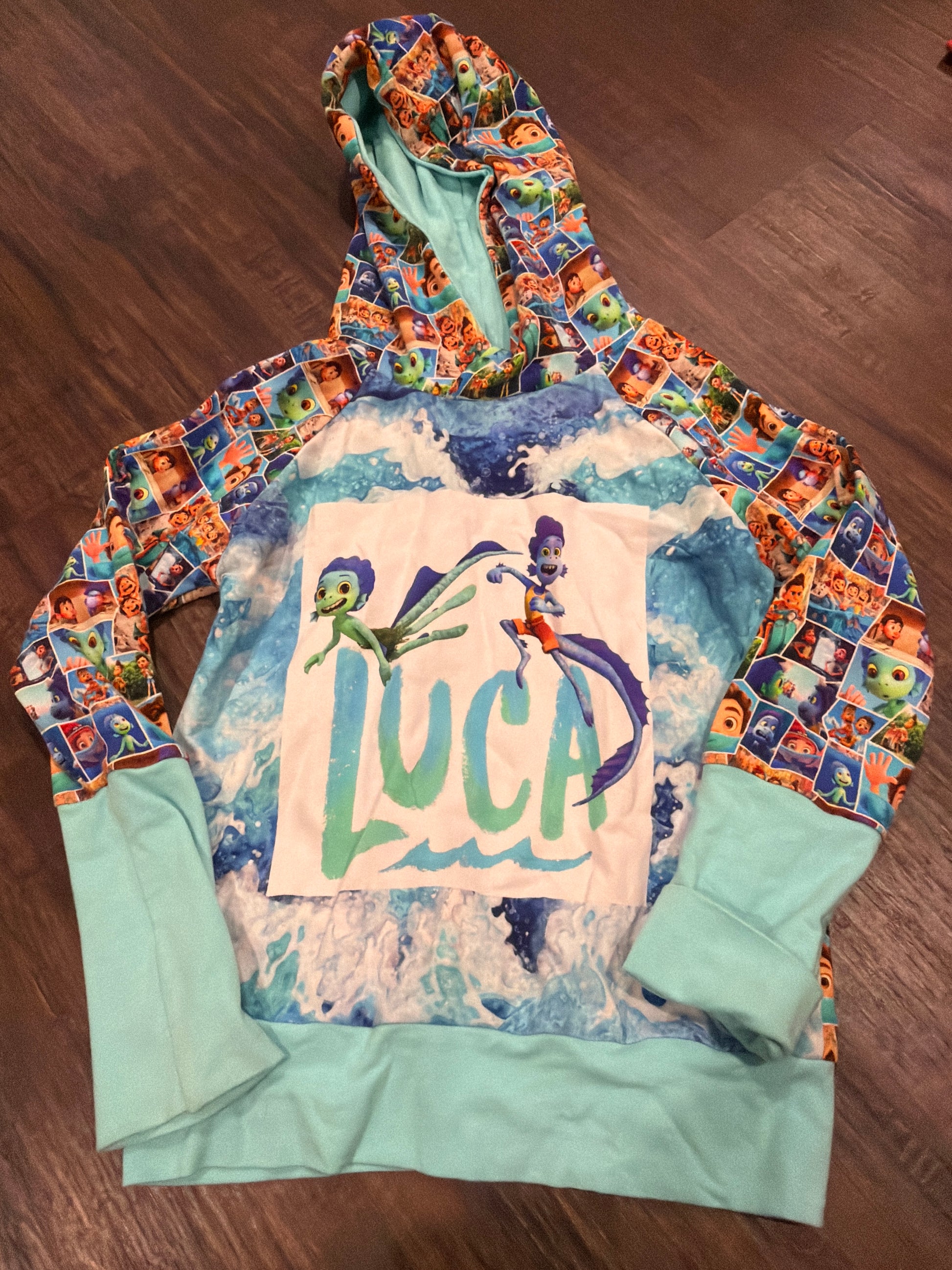 #107 like new Disney Luca size 6-9 grow with me hooded sweatshirt