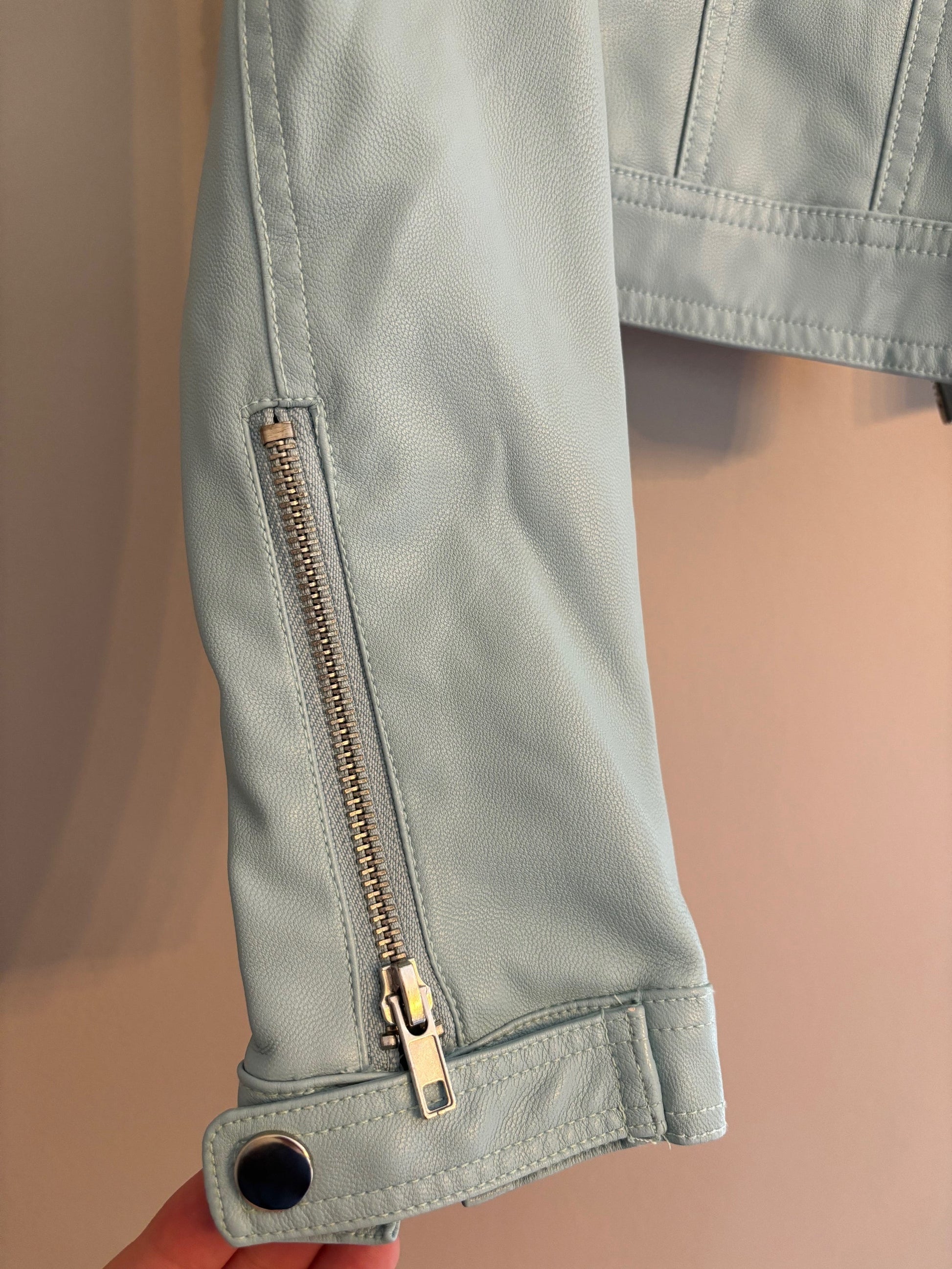 #70 Women's Gianni Bernini faux leather moto jacket size small VGUC