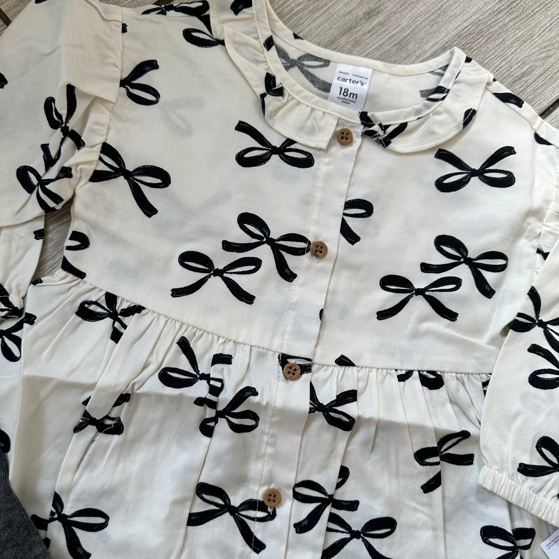 #111 Carters Bow Print Dress with Tights 18 Months NWT