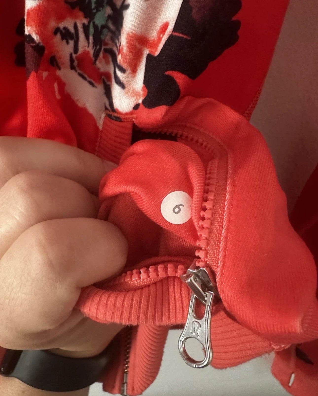 #111 Lululemon Namaskar Hoodie Sweater Atomic Flower Parfait Orange Size 6 Full Zip