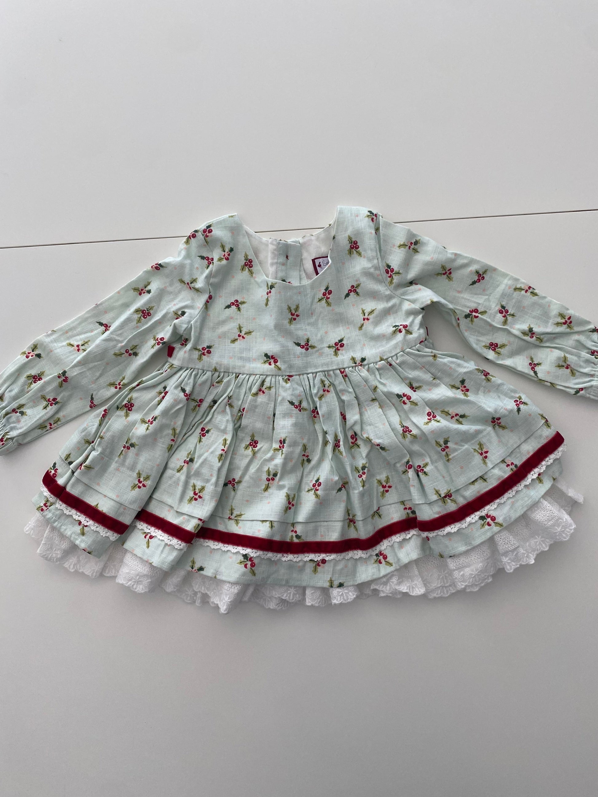 #117, Girls 2T, Sweet Honey green holly dress, EEUC
