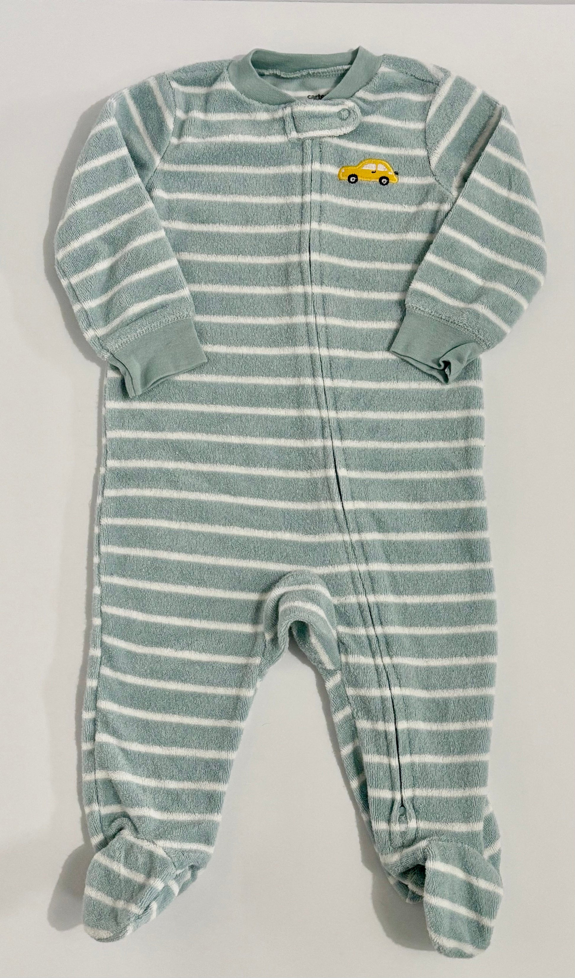 #132 - REDUCED- Carter's: Cars Light Blue/White Striped Sleeper Pajamas, 9M