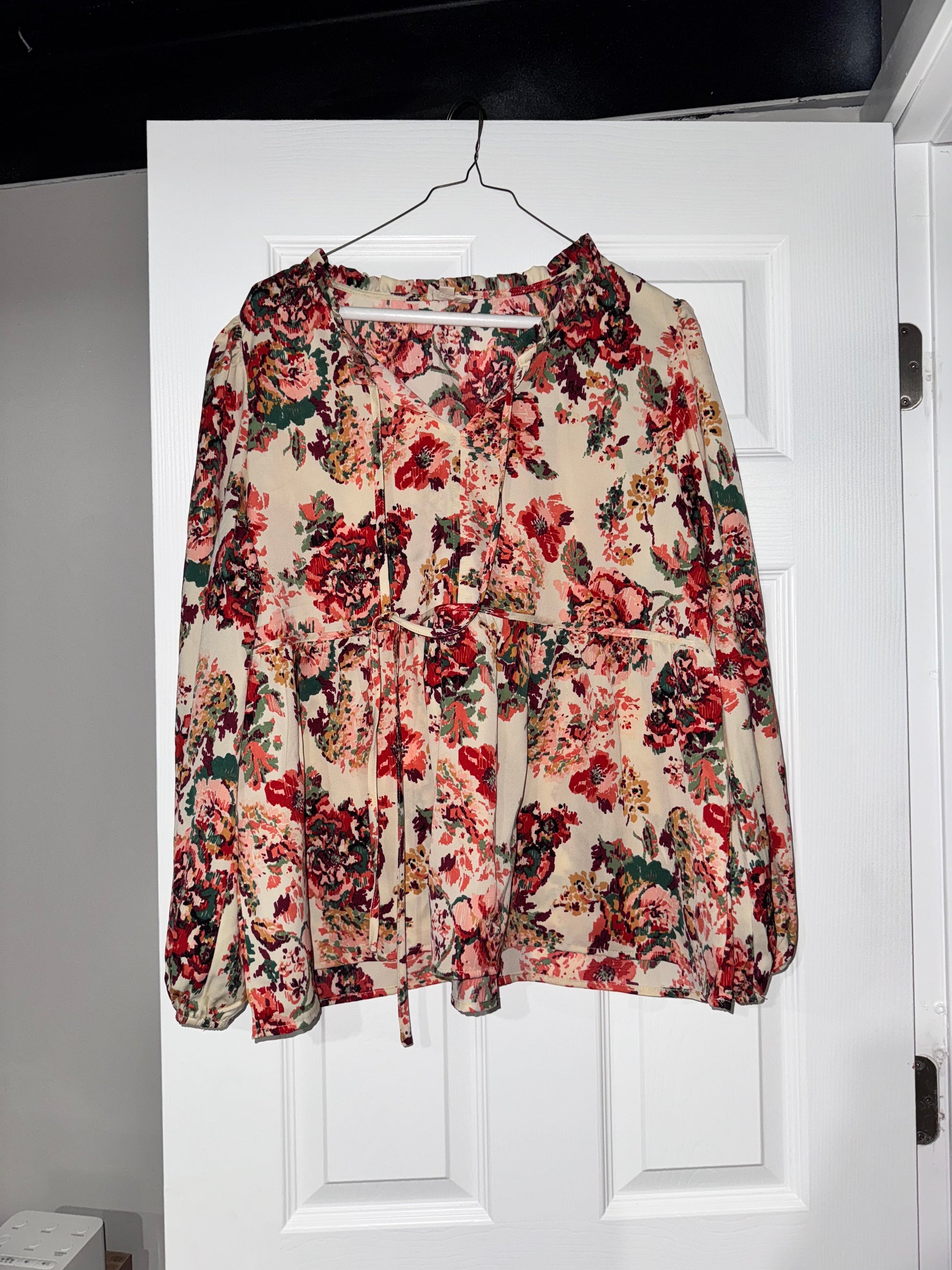 #133 Bibi Floral Babydoll style top Sz M Womens