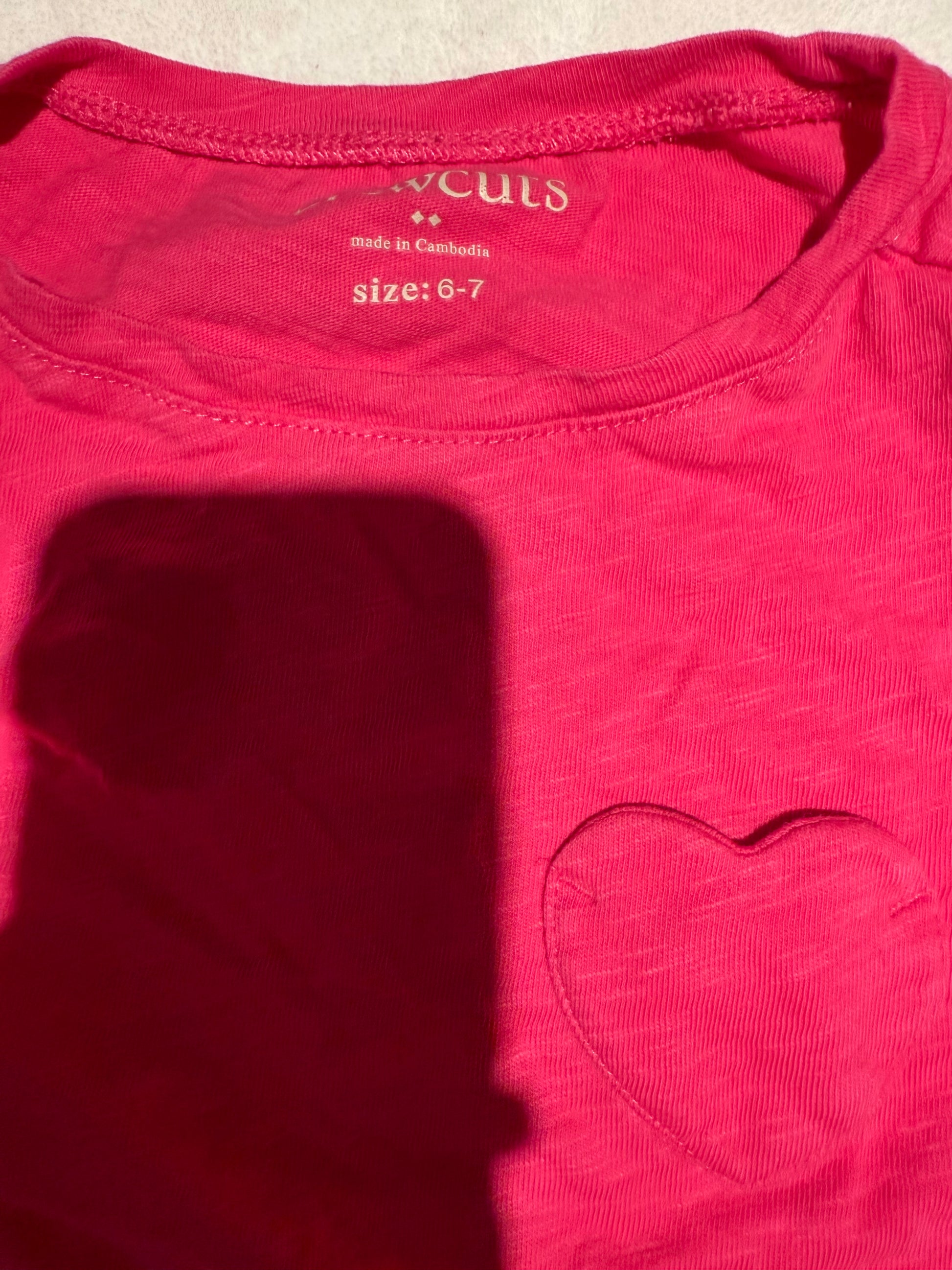 136 EUC Crewcuts pink shirt with heart pocket 6/7