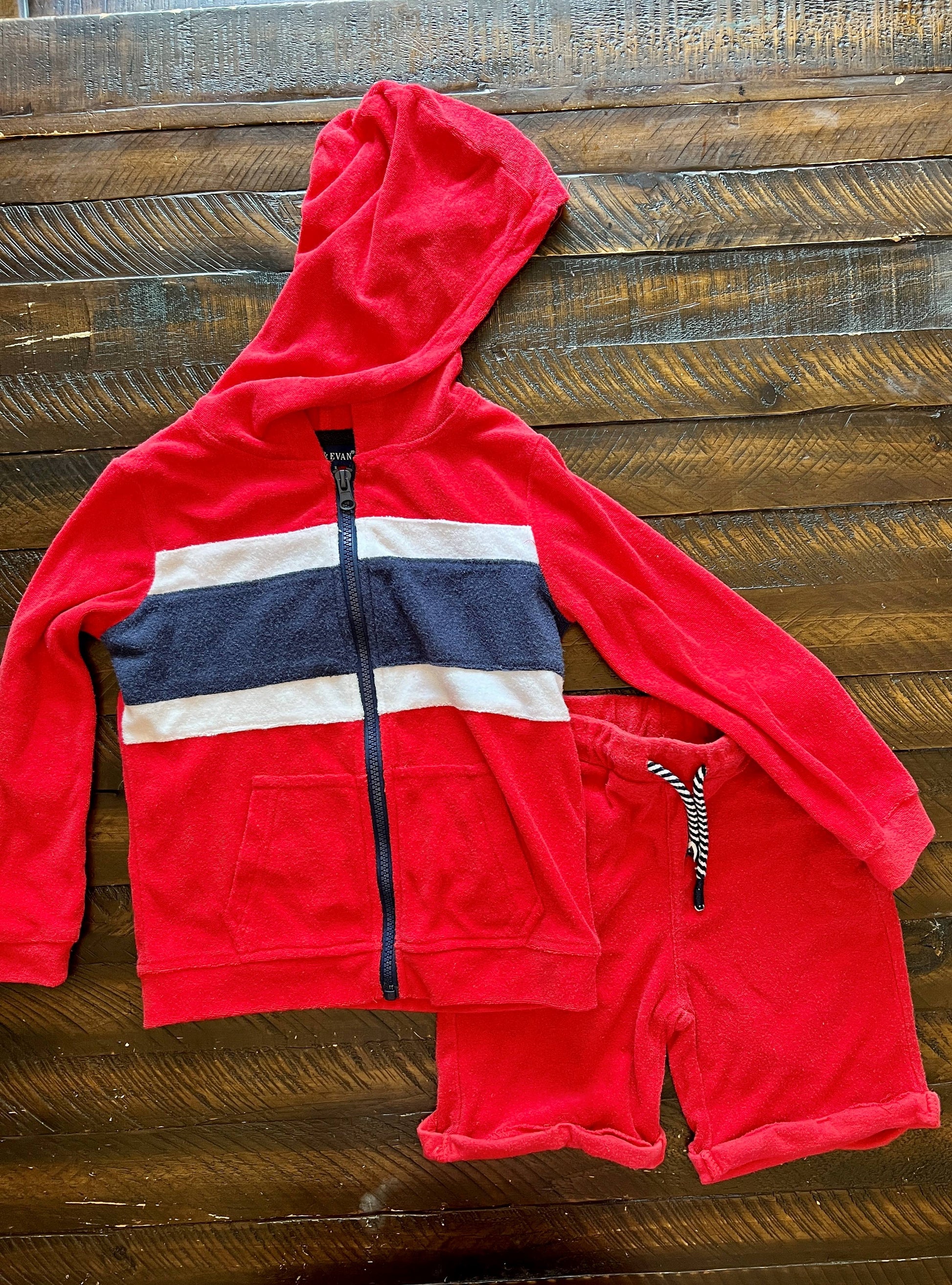 134 Boys Vacation Terry Cloth Zip up Hoodie & Shorts Set Size 5