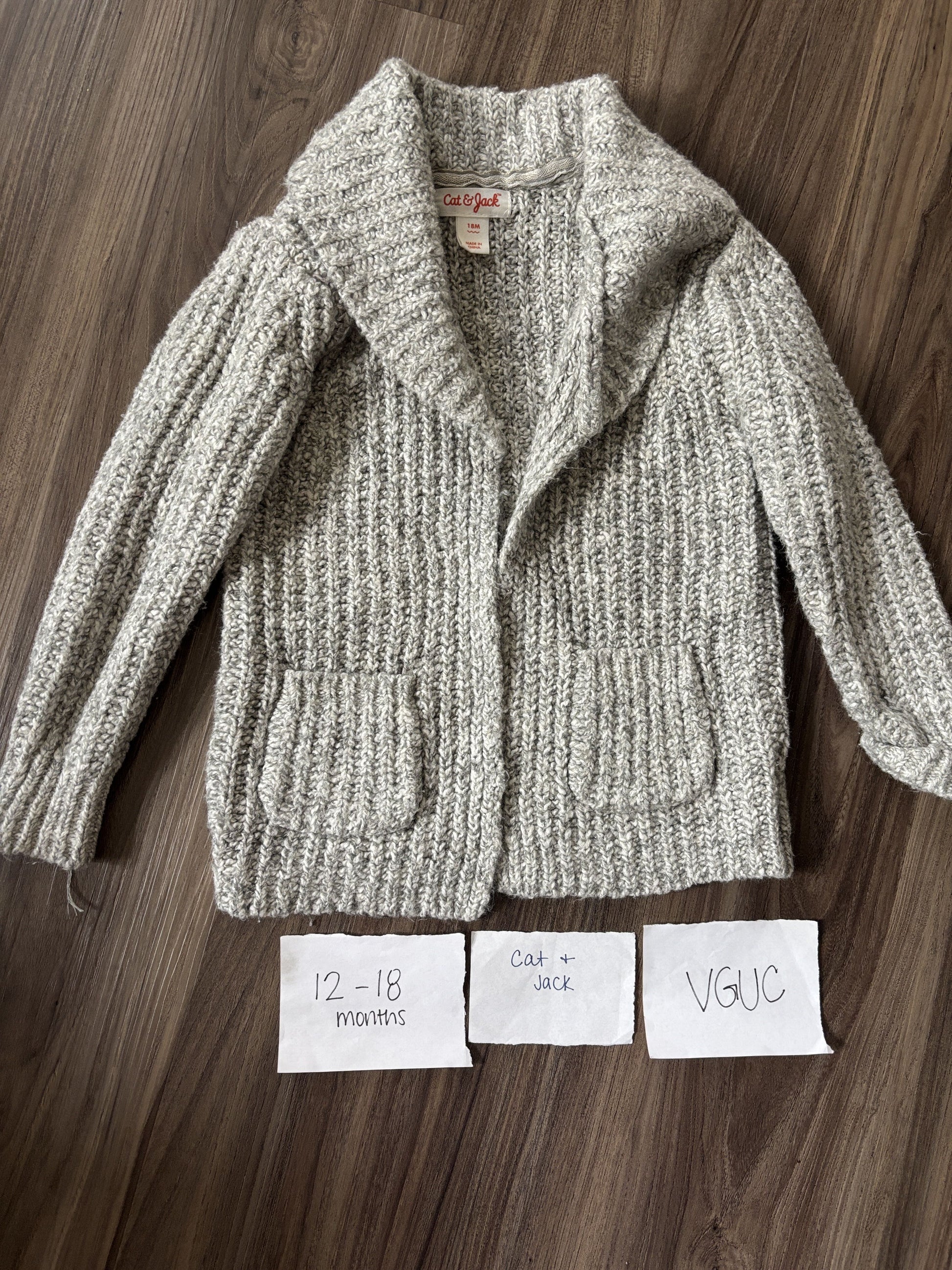 #138 - 12-18 Mo - VGUC Cat & Jack - Grey Cardigan - PU 45236