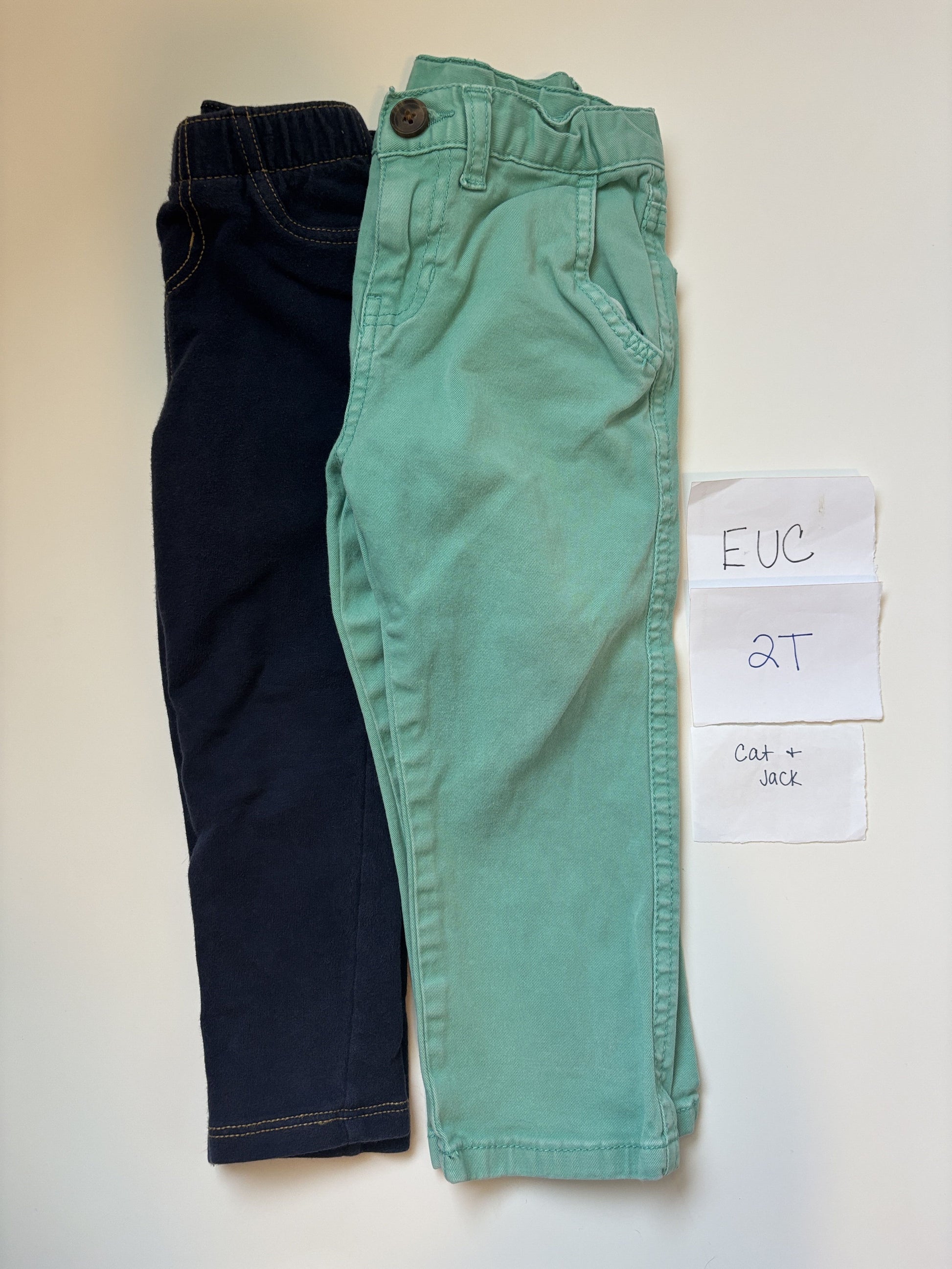 #138 - 2T - EUC Cat & Jack - 2 Pair Jeans (denim + green) - PU 45236