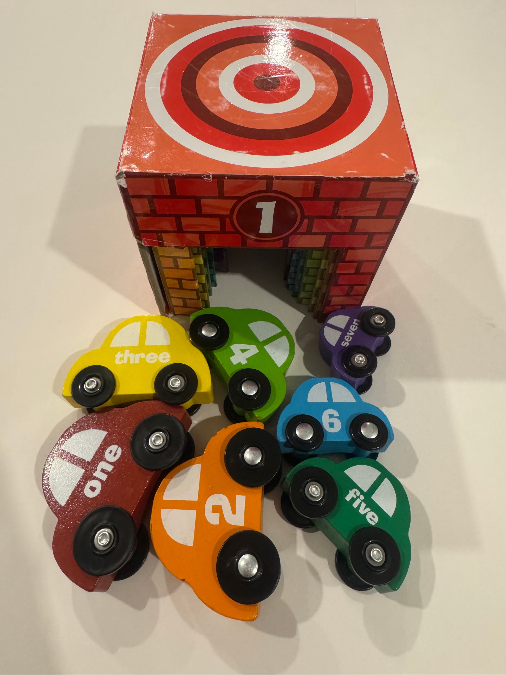 A piece of the side of the number 1 and number 6 garage got torn off. See picture. Does not impact play! Otherwise good condition.