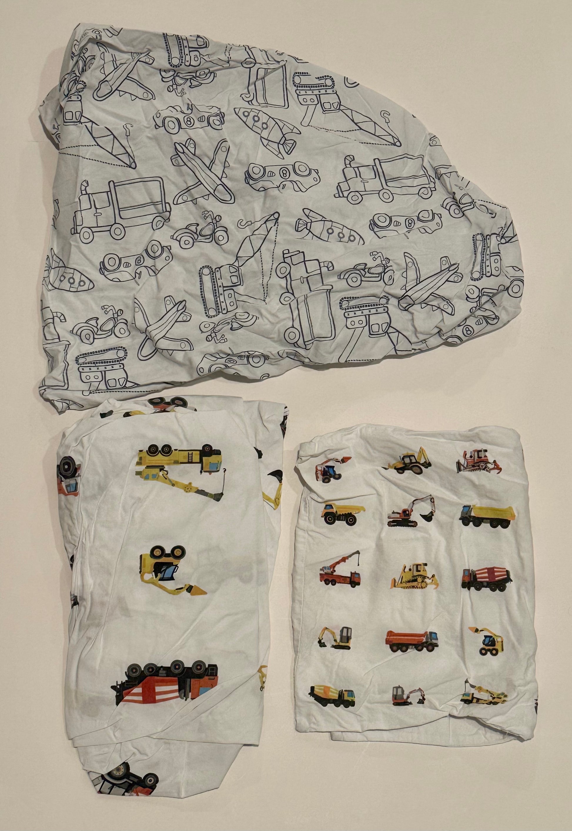 #187 Vehicle Crib Sheets (2) and Matching Pillow Case (1)