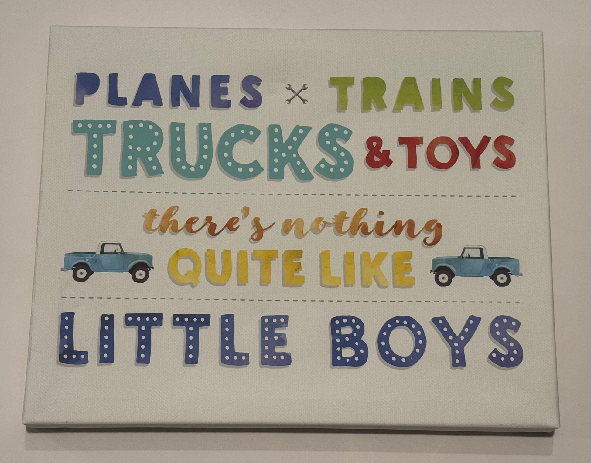 I bought all these prints off Etsy and then printed them on canvas for my son's vehicle themed room