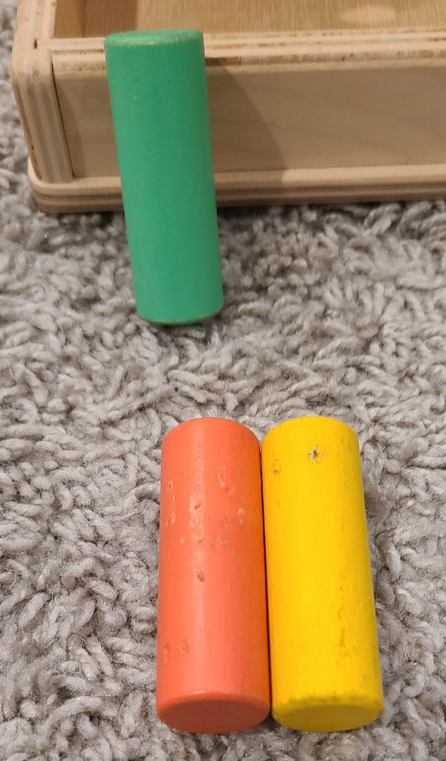 Please see the attached pictures, kid bite marks on the pegs - red and yellow were the worst victims.