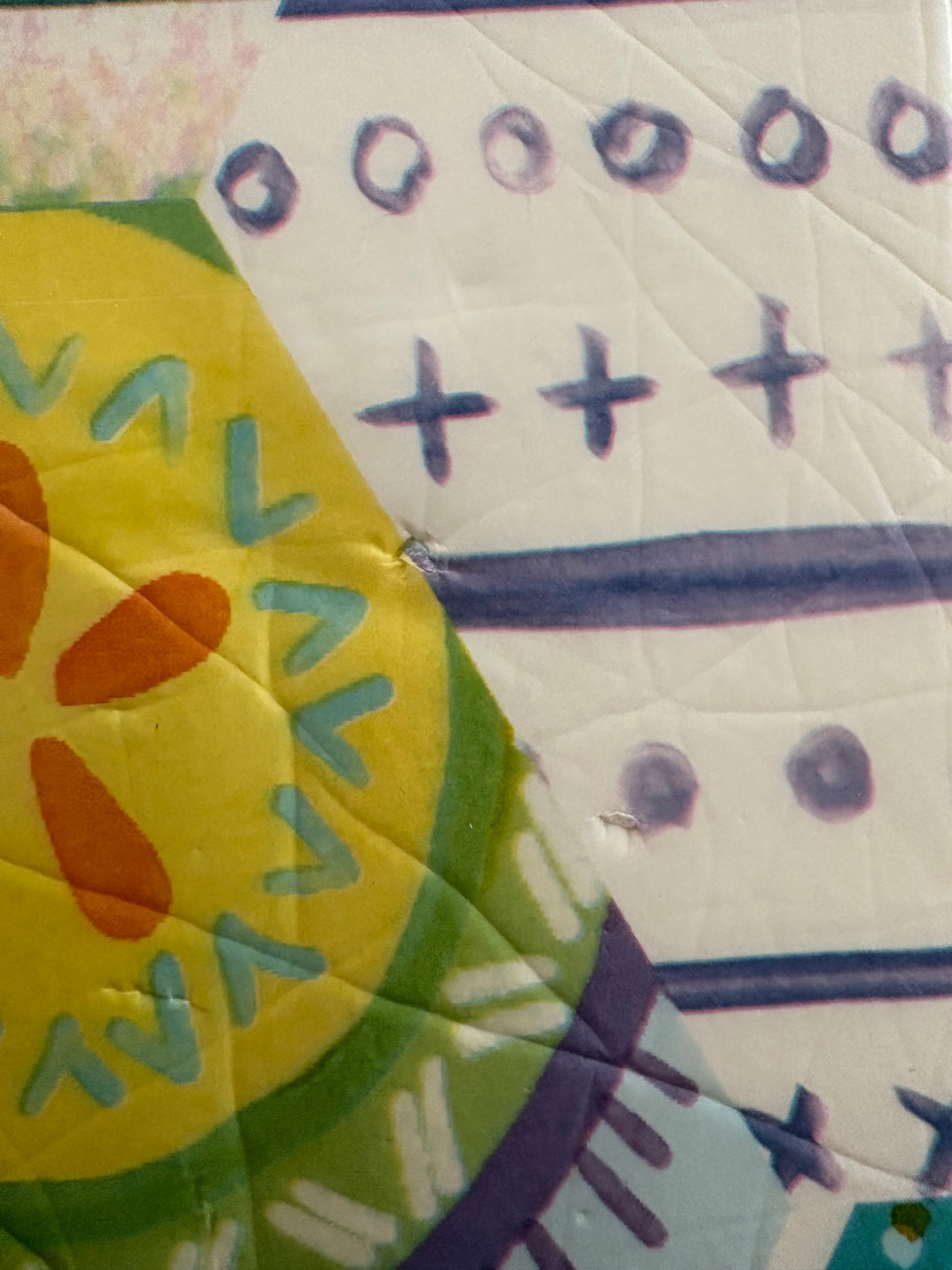 This is a double sided Infantino Matt, 4‘ x 4‘ with sides that fold up to make a tray. Slight wear and a few puncture marks as seen in the photo.