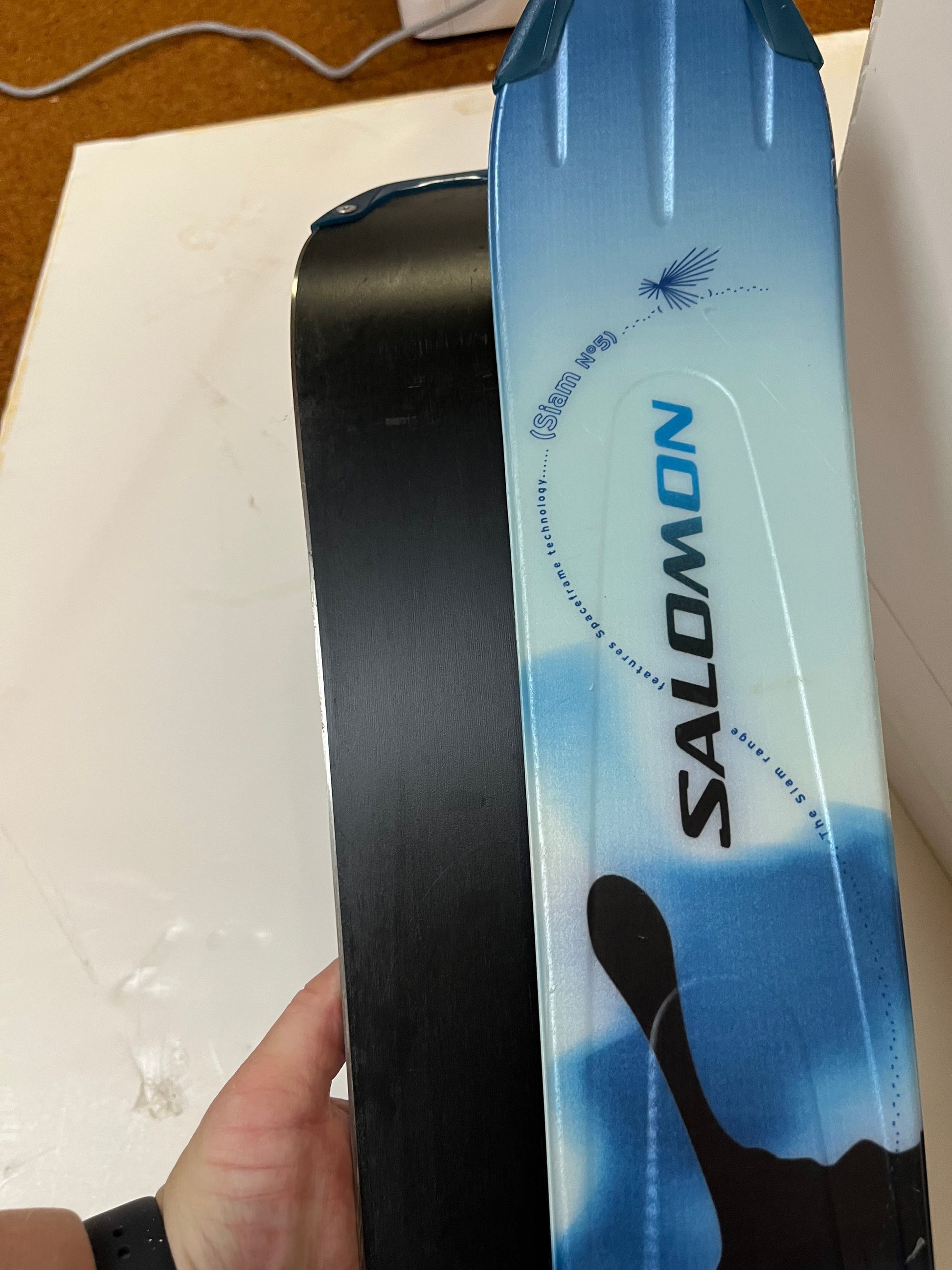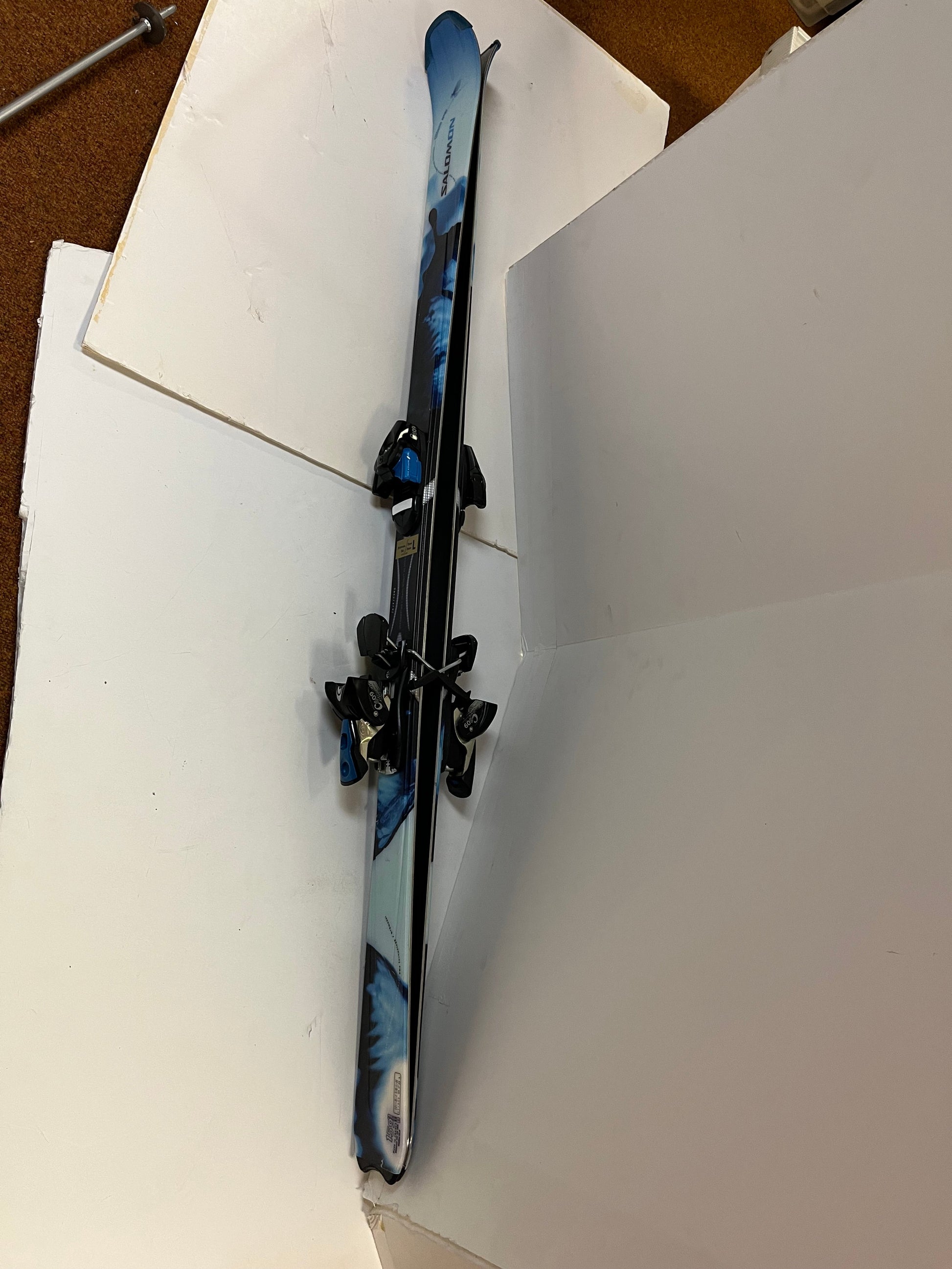 These are pair of used SALOMON skis with NORDIC a boots in size 10. They also come with junior poles and we’re used by a child age 15 to 17.