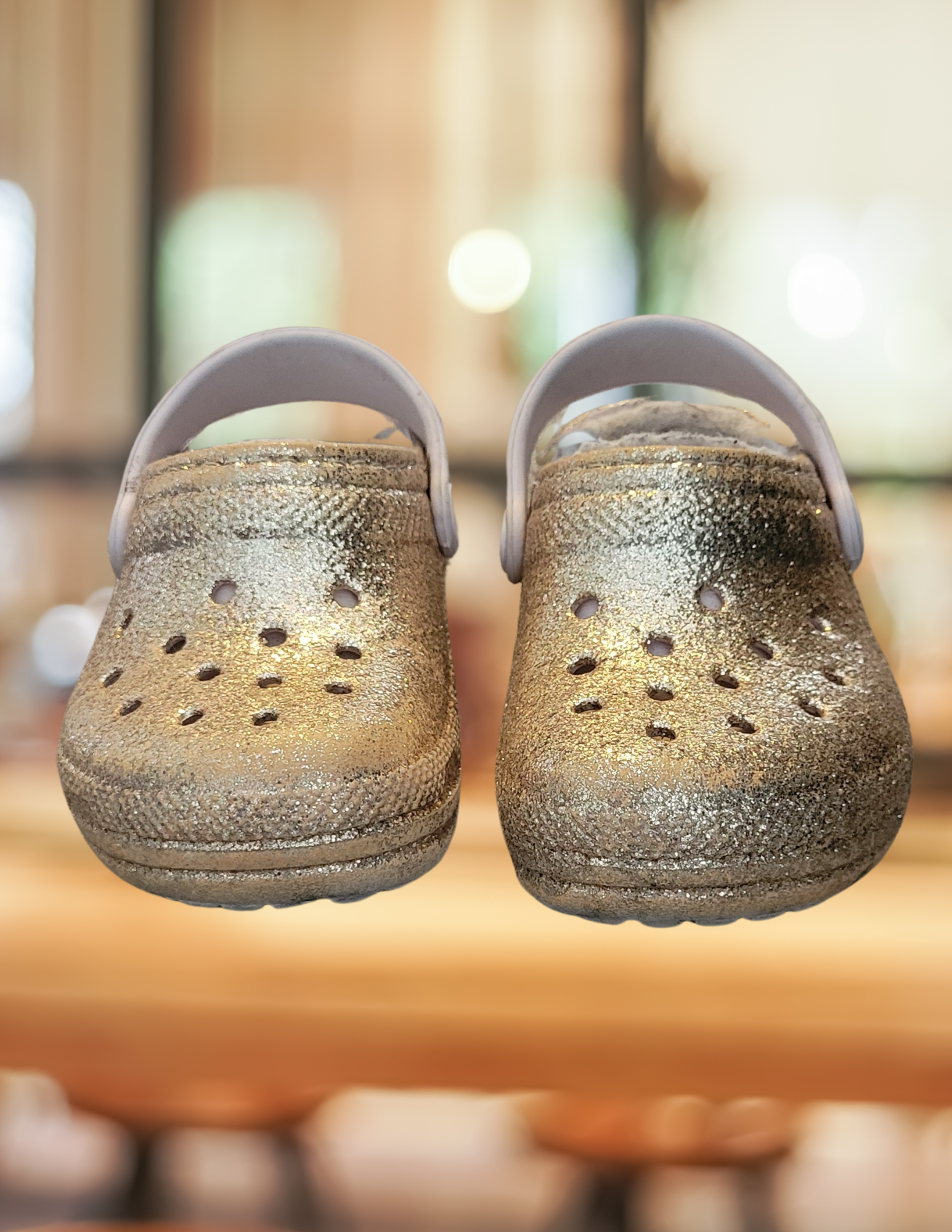 #59 Crocs Glitter Fur Lined Girls Child Size 8