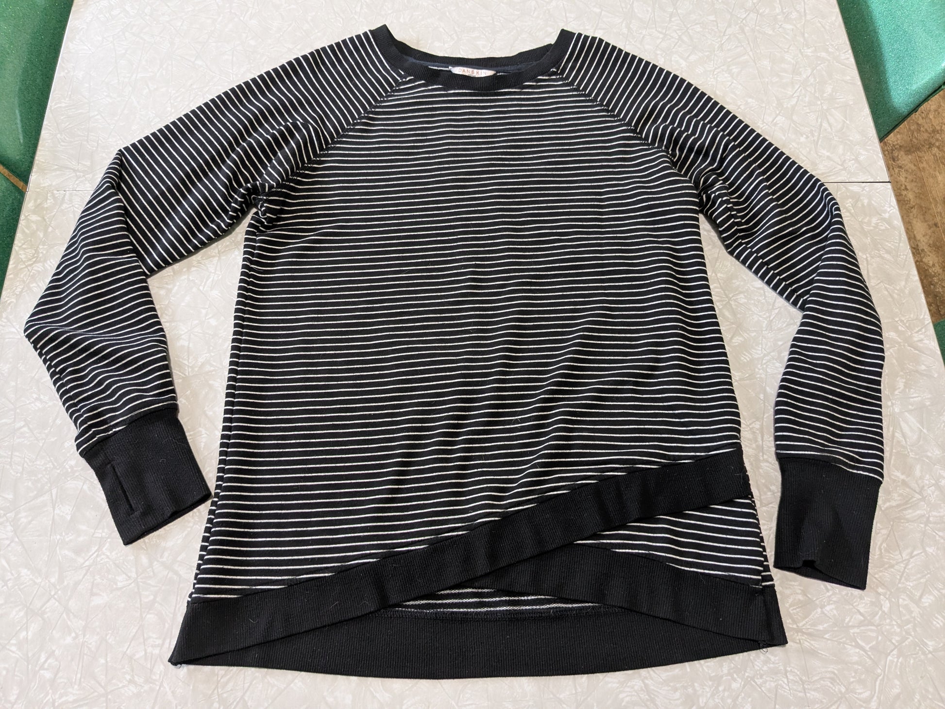 #61 Women's Danskin Small Crossover Sweatshirt Black & White Stripe