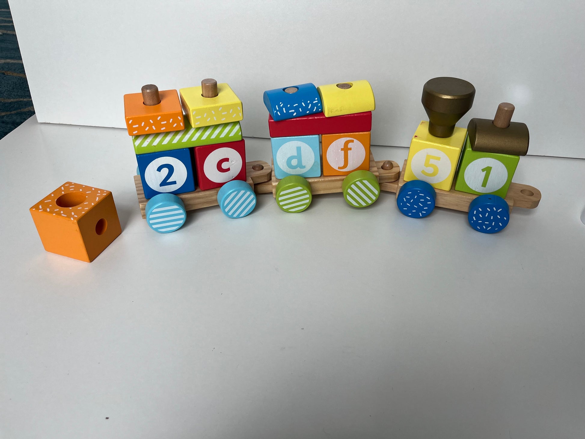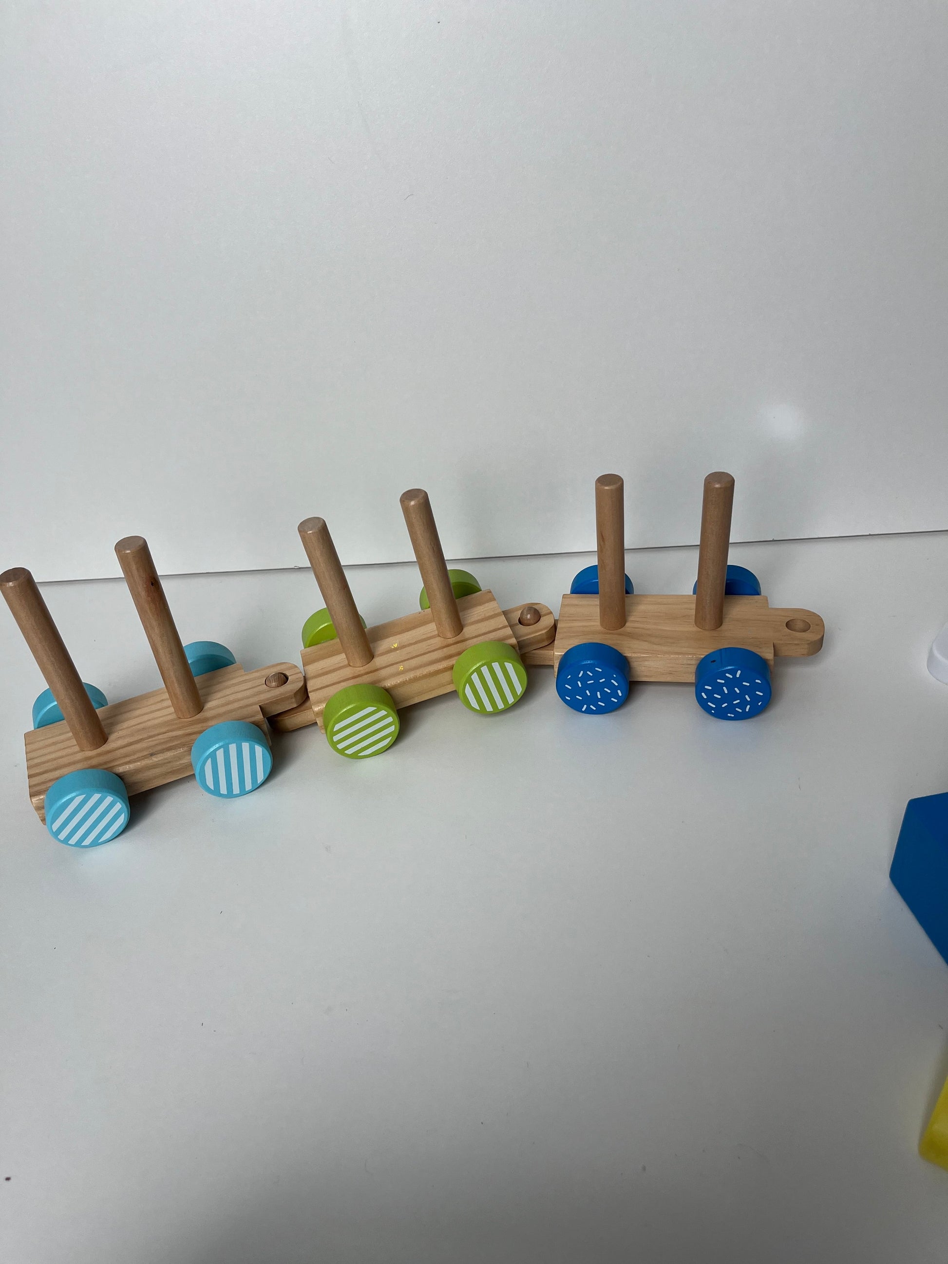 this wooden set has flexible pegs! It's awesome because when it gets stepped on or fallen upon in the playroom , doesn't hurt (as much)