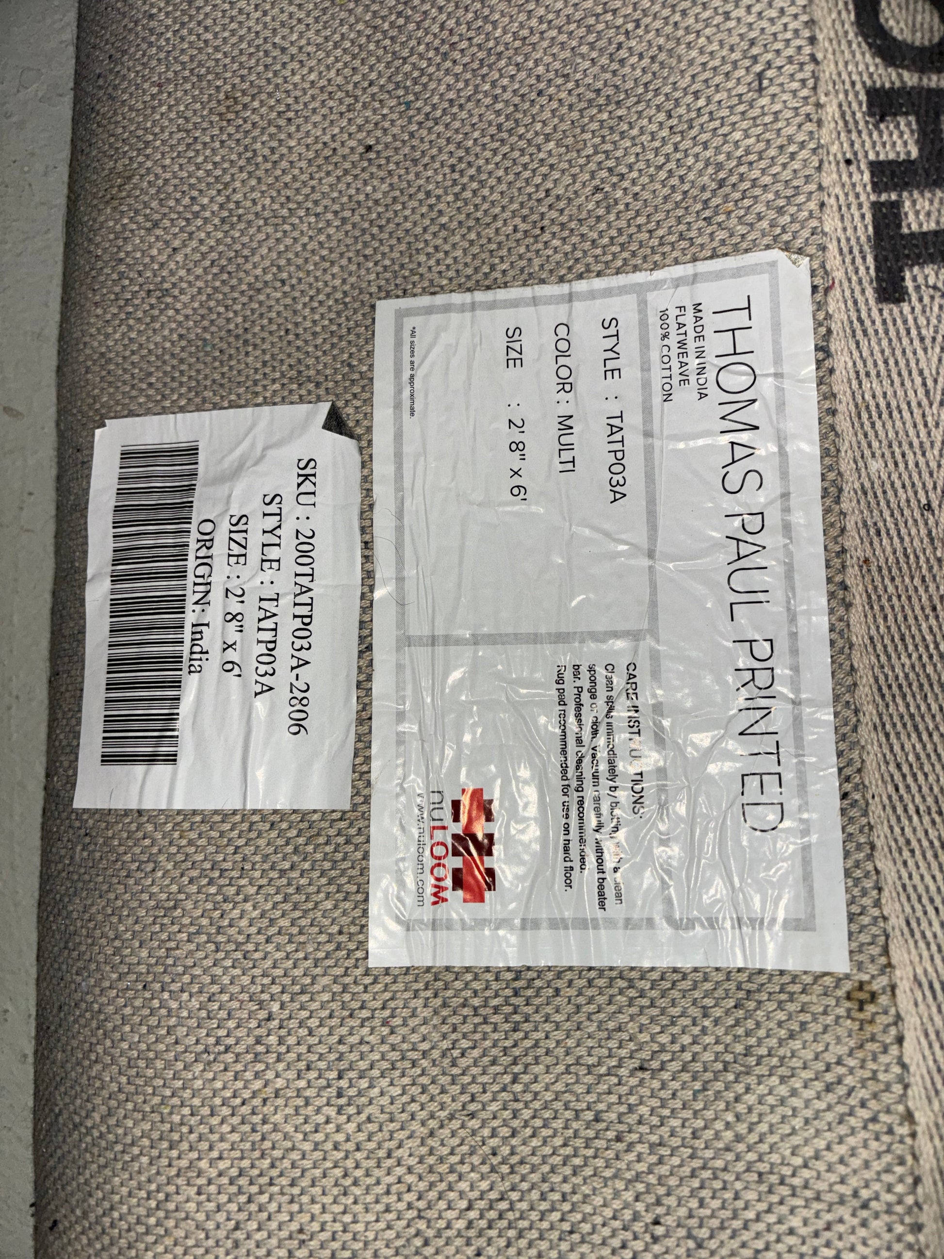 #70 NEW Thomas Paul printed rug 2'-8"x 6' 45242 pick up