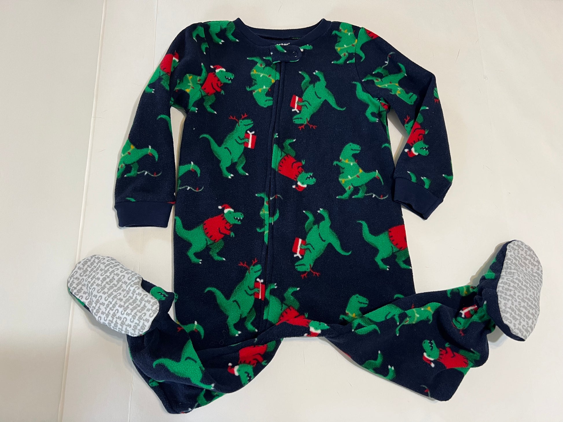 #78 boys 2T carters santa dino fleece sleeper