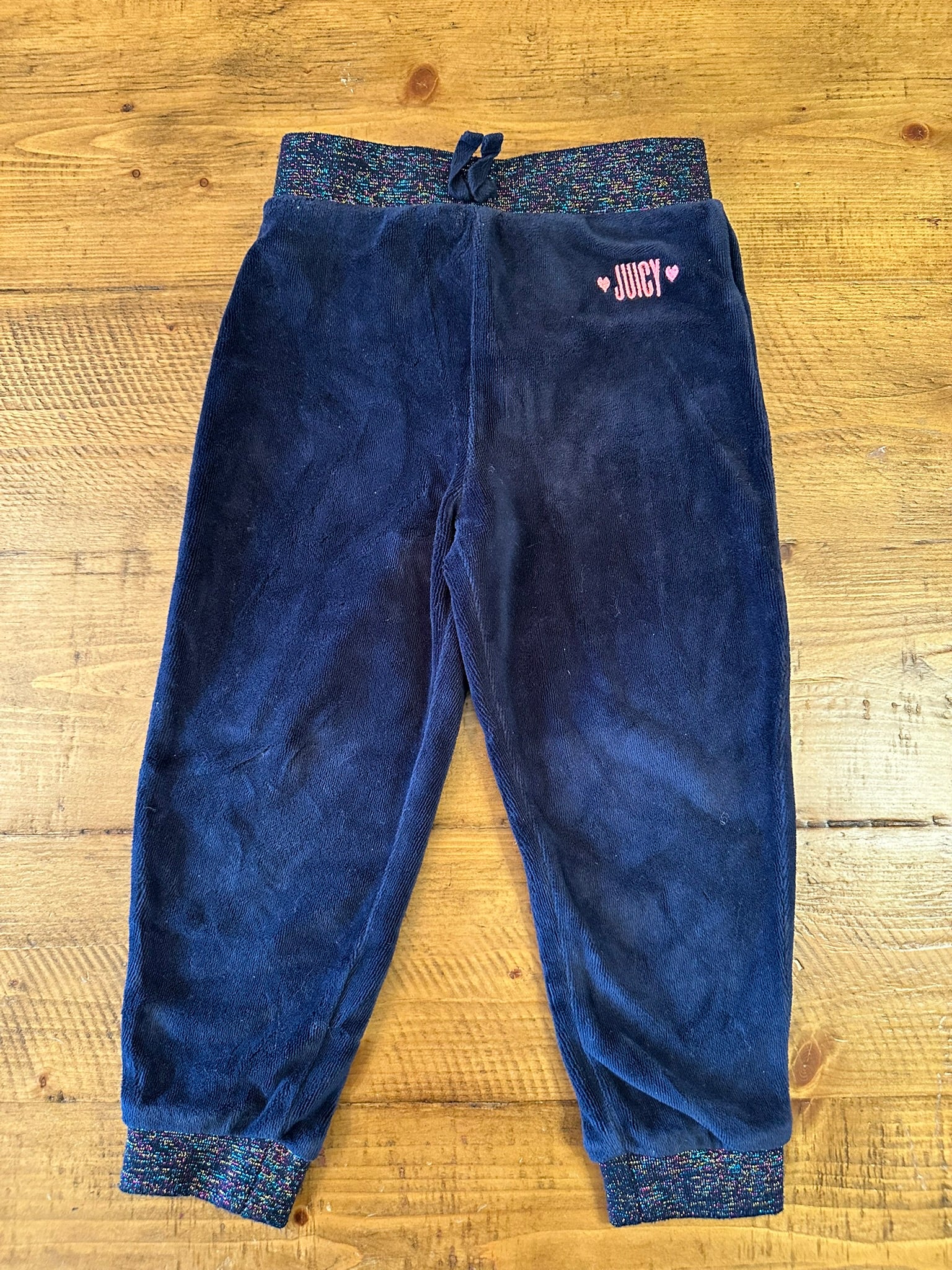 Very good used condition; sleeves and waist are sparkly. This is a navy velour like set.