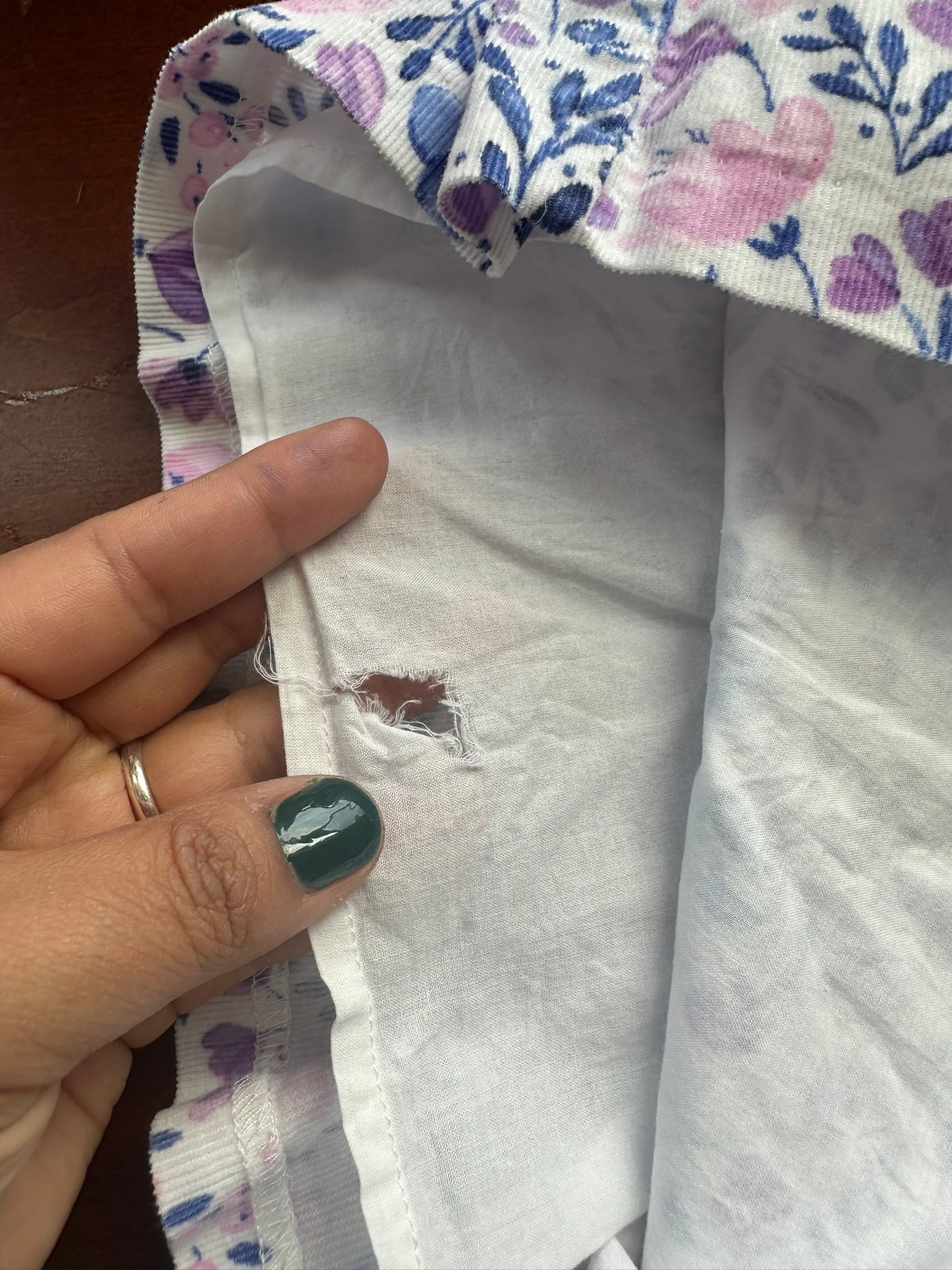 This is very cute. Only used 1 time. GUC due to an small hole in the dress lining. Corduroy material.