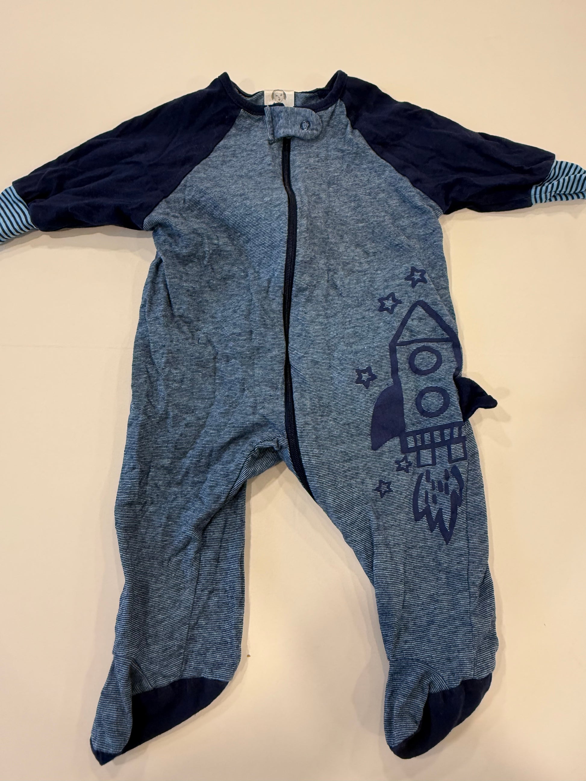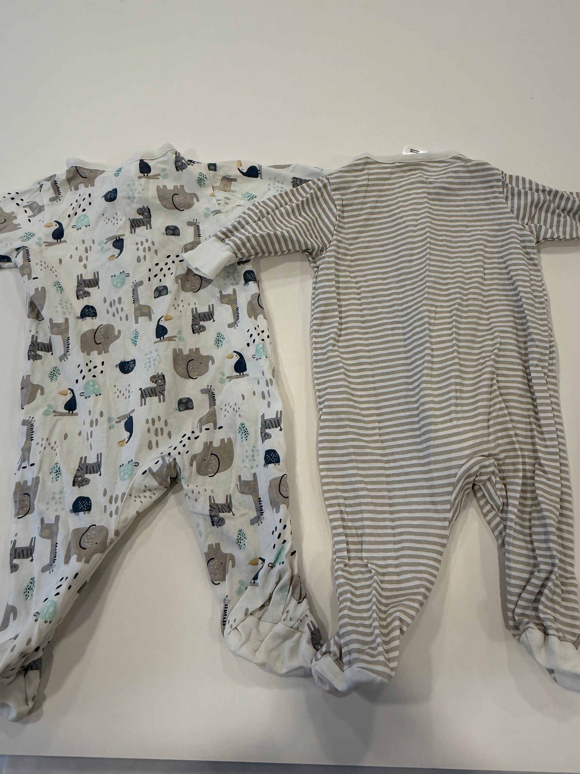 #9 - Gerber - 3 Zipper Sleep N Plays Beige Animal & Blue Space Infants SIZE 0-3M