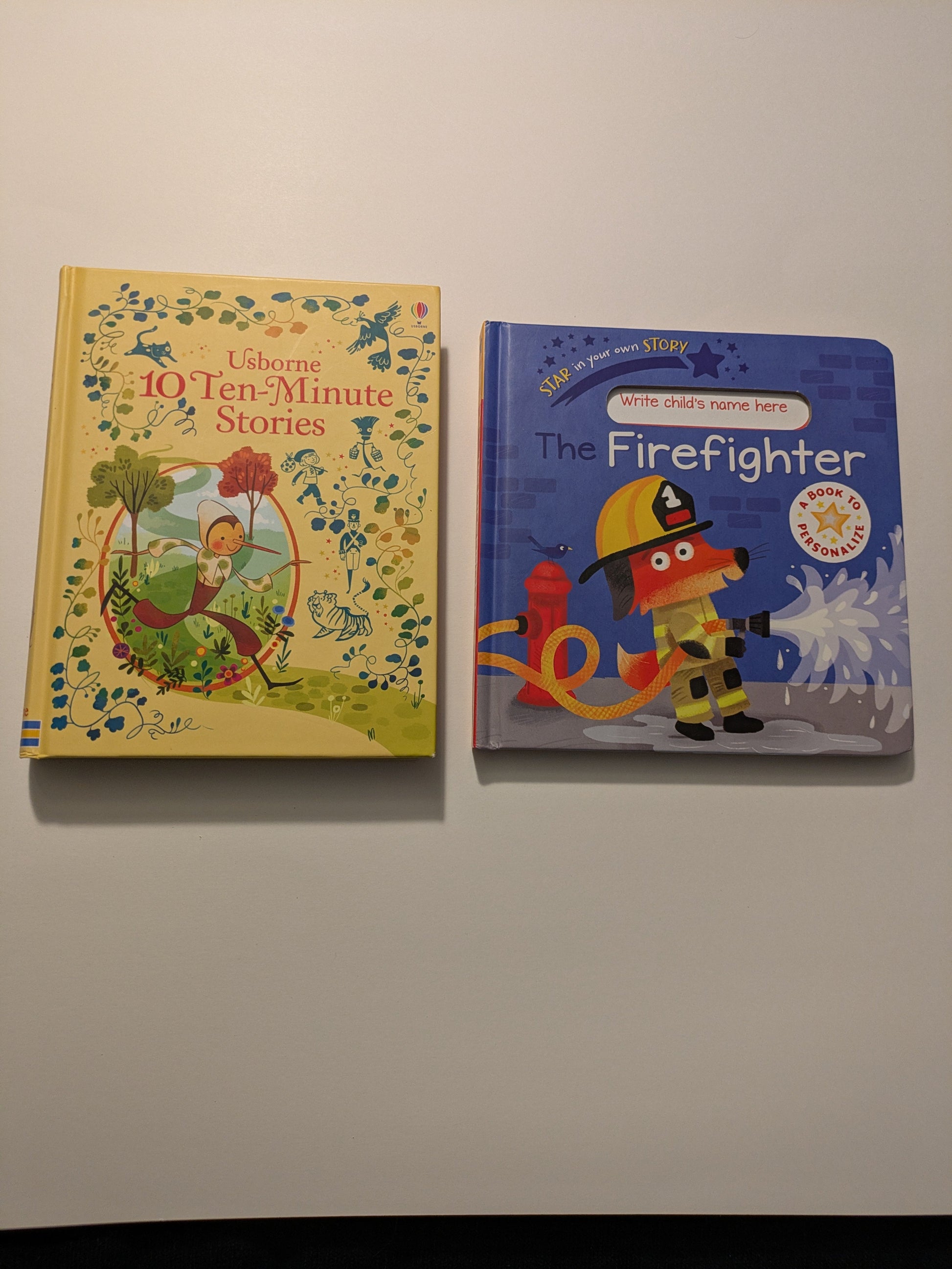 10 Ten-Minute Stories (hardback) and The Firefighter (board book - comes with card to write child's name and slip into place to make them part of the story)