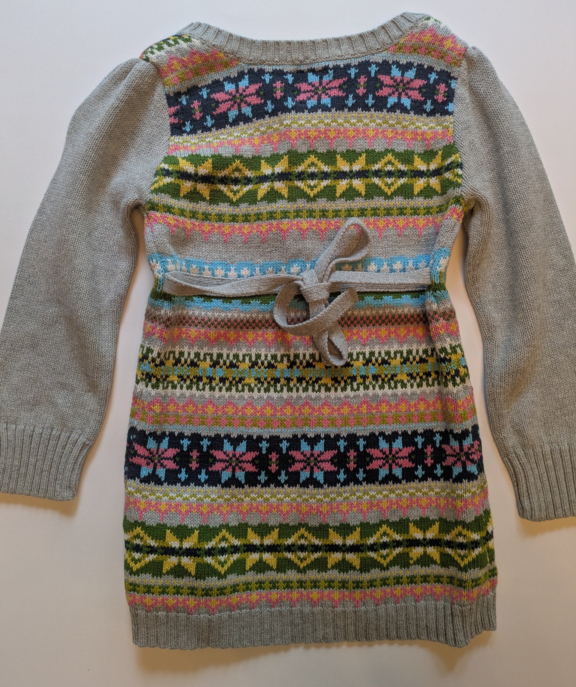 3T Old Navy Sweater Dress. Colorful Scandinavian design with gray accents and pink buttons in front. Tie in back