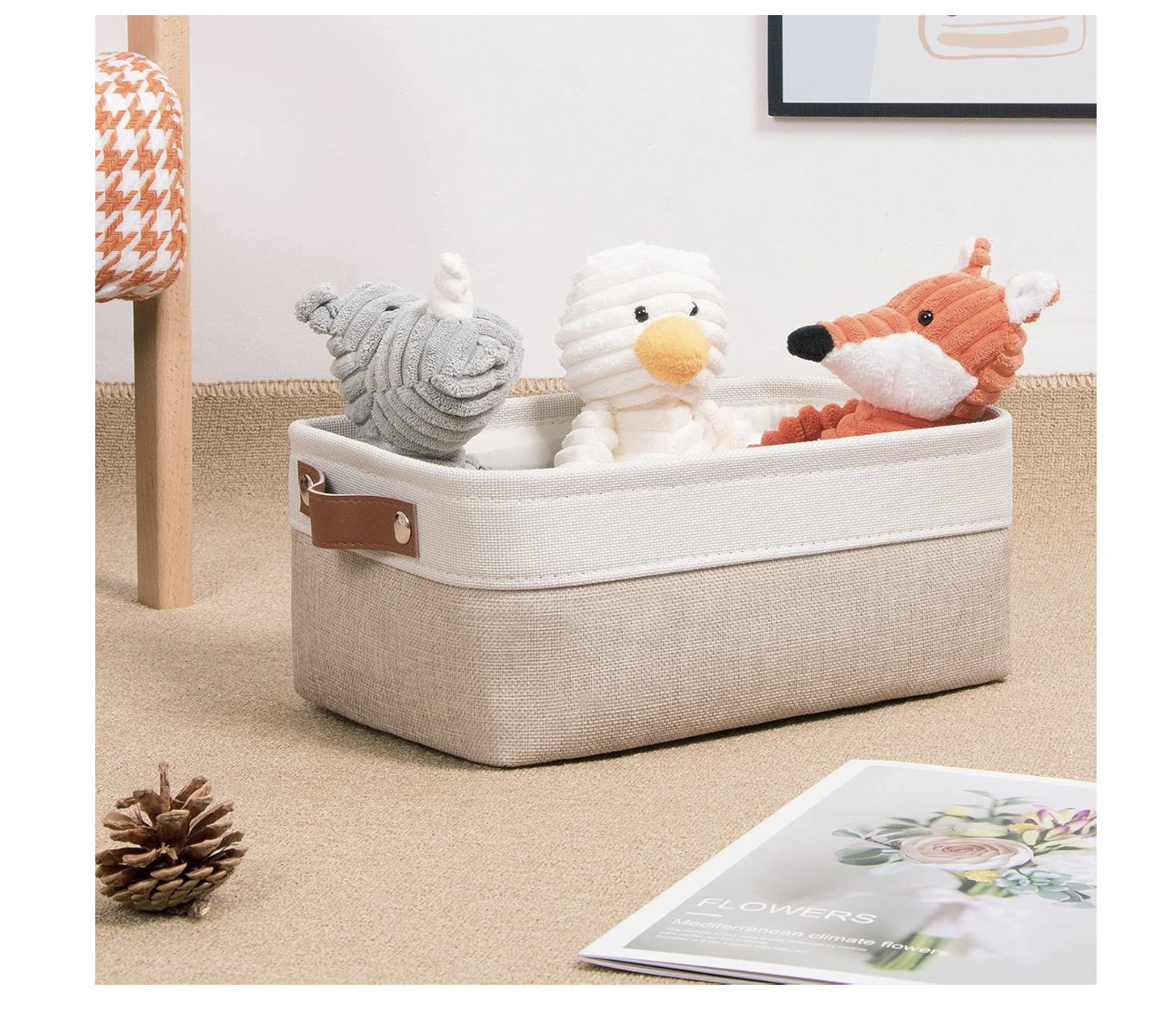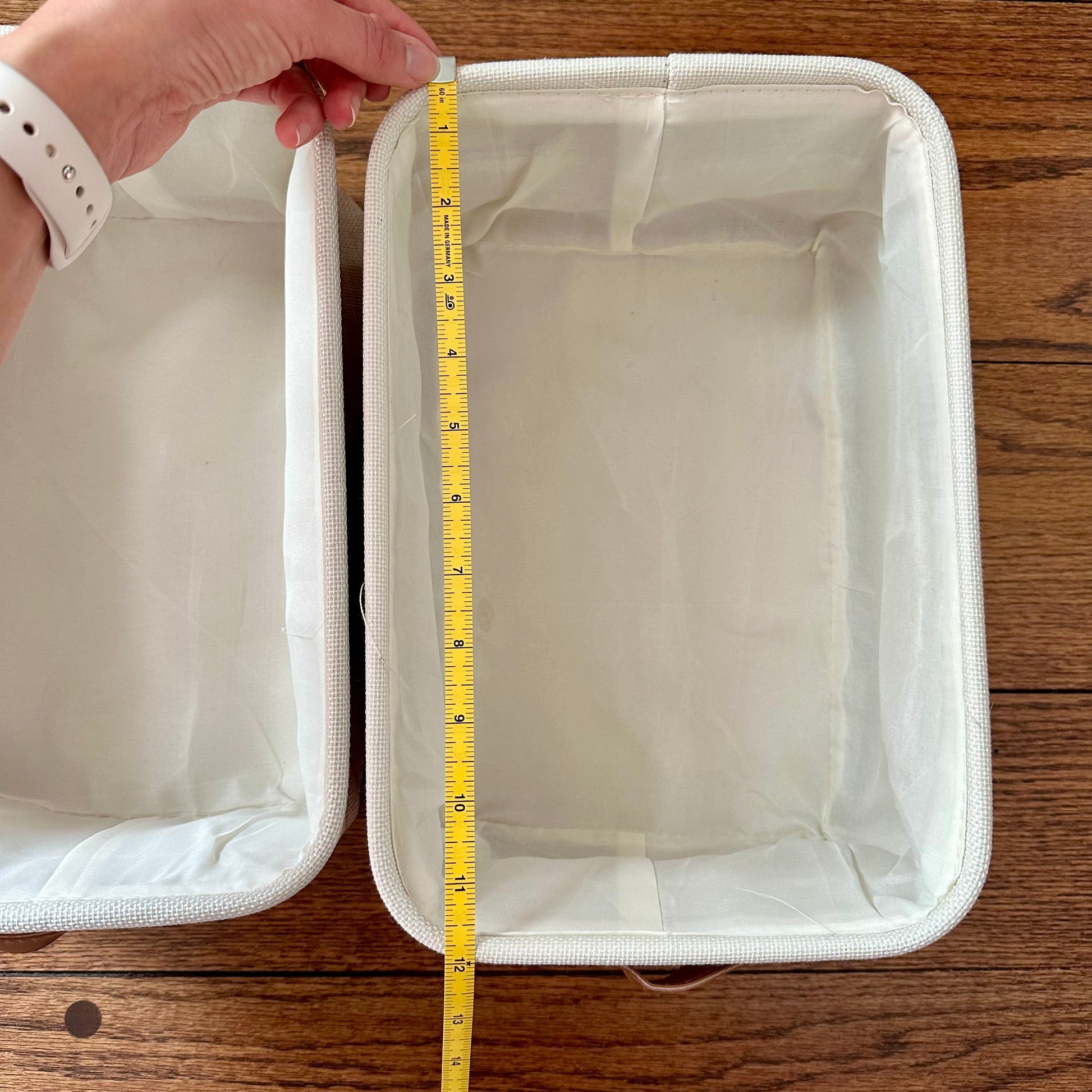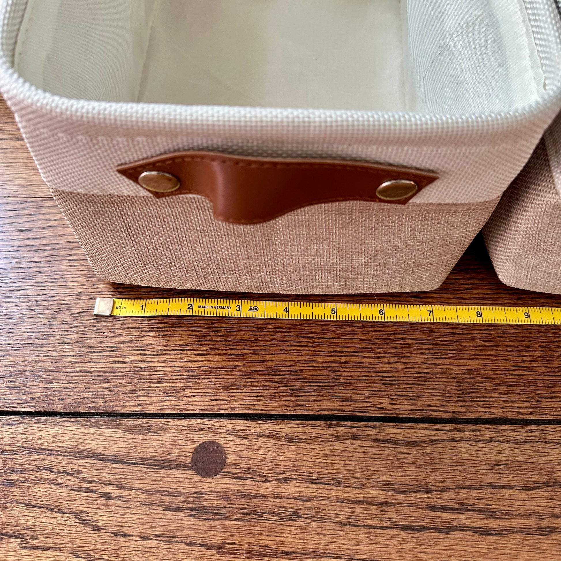 #95 Small Rectangular Storage Bins in White and Khaki, size 7.9 x 11.8 x 5", set of 2