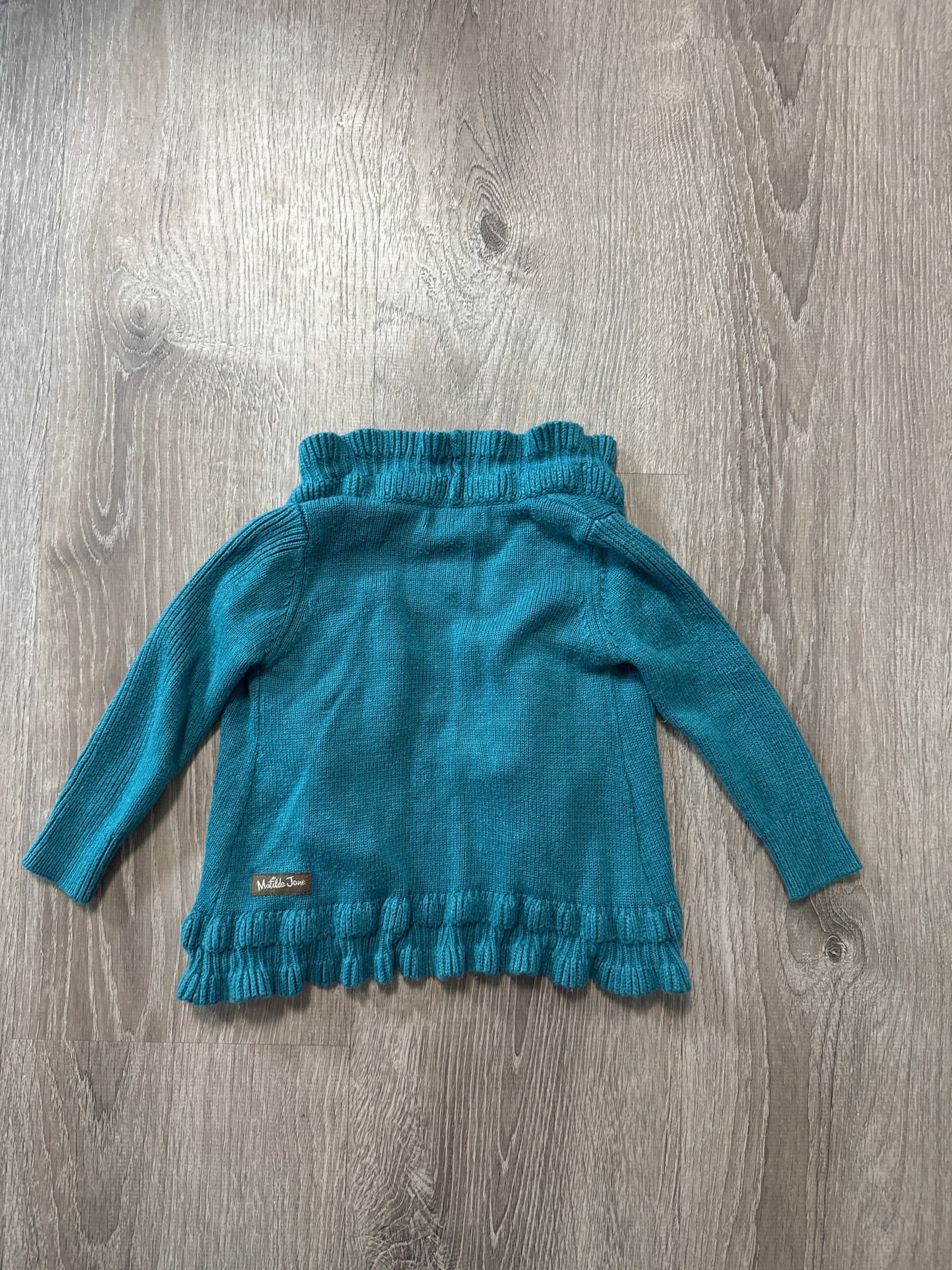 Matilda Jane rich teal sweater jacket with ruffles. Very mild piling.