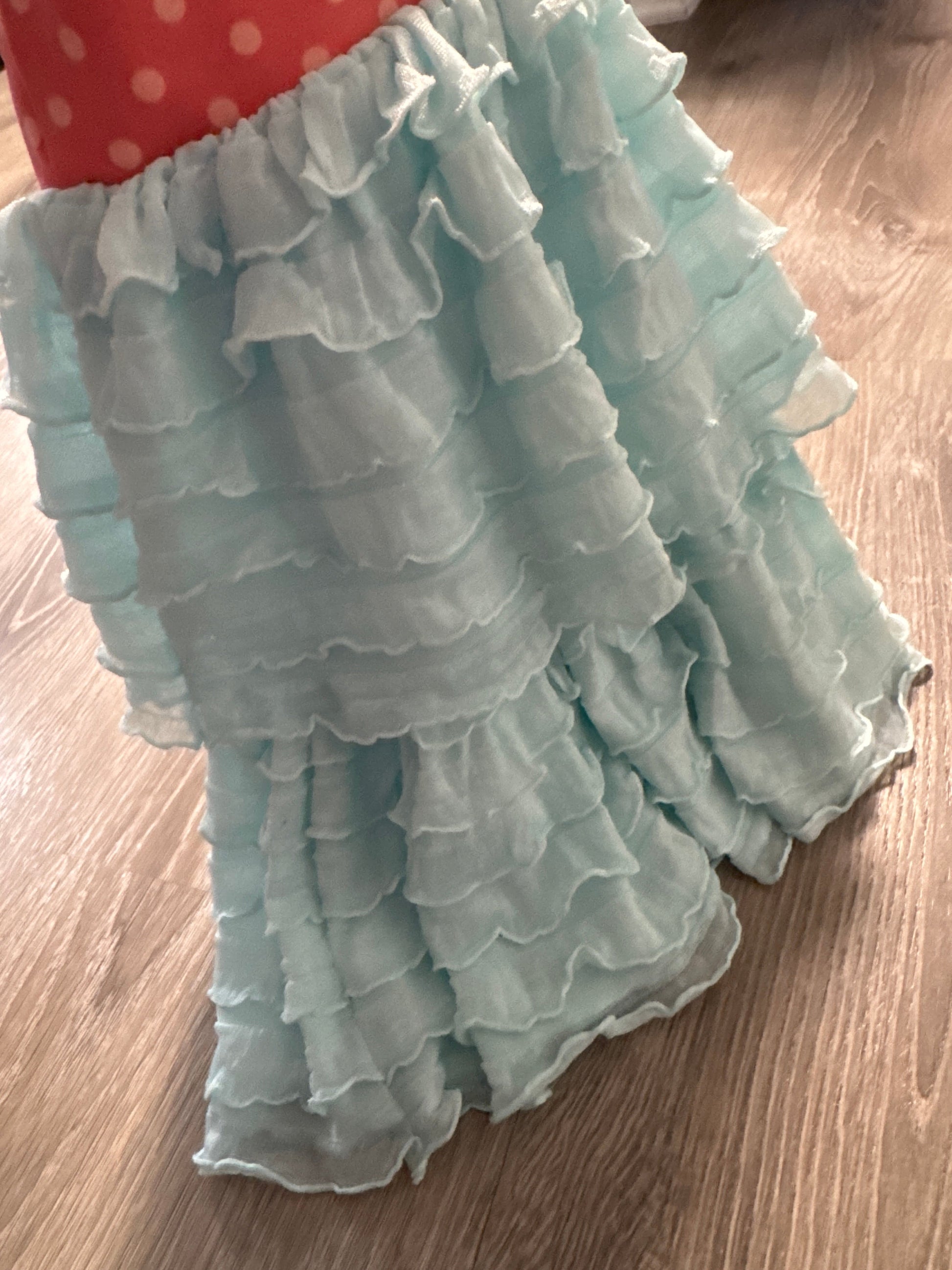 Matilda Jane size 18-24m baby girls cupcake dress with fun frilly ruffles! No diaper cover. So fun for dress up and birthdays! This dress is a 18-24m but is actually longer than the size 2 “toddler” style FYI. (We wore up to age 3)