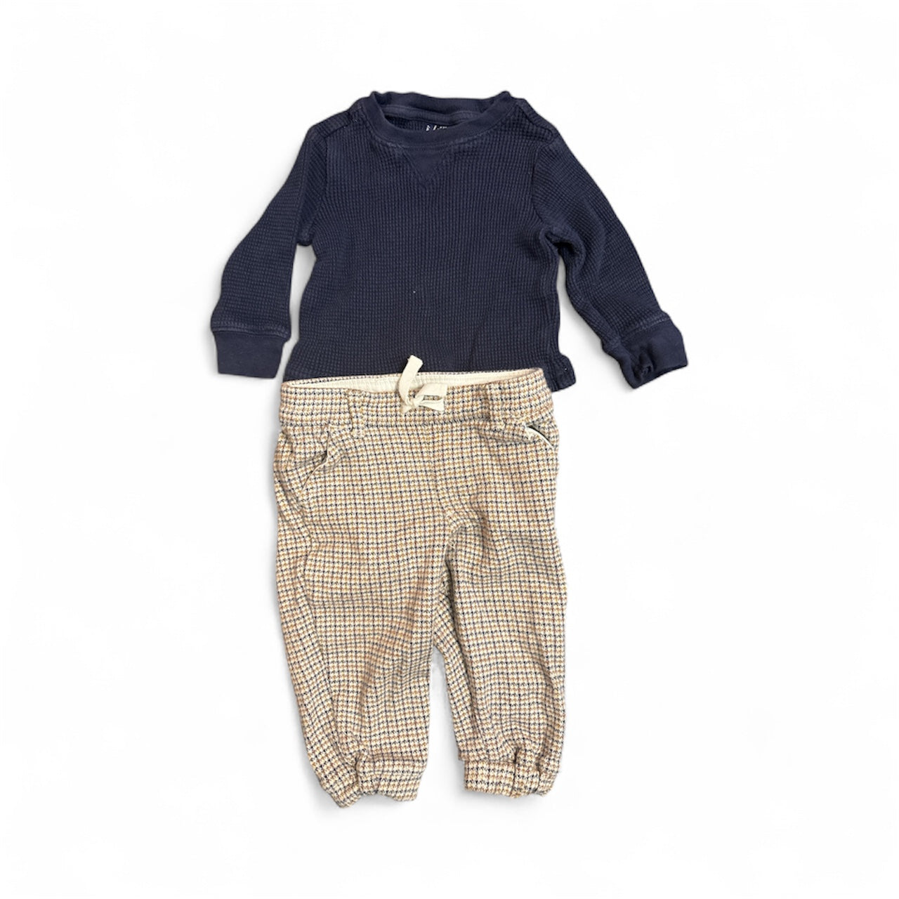 #28 REDUCED Janie & Jack Blue Thermal Shirt Houndstooth Pants and Chunky Knit Cardigan Bundle Size 6-12M