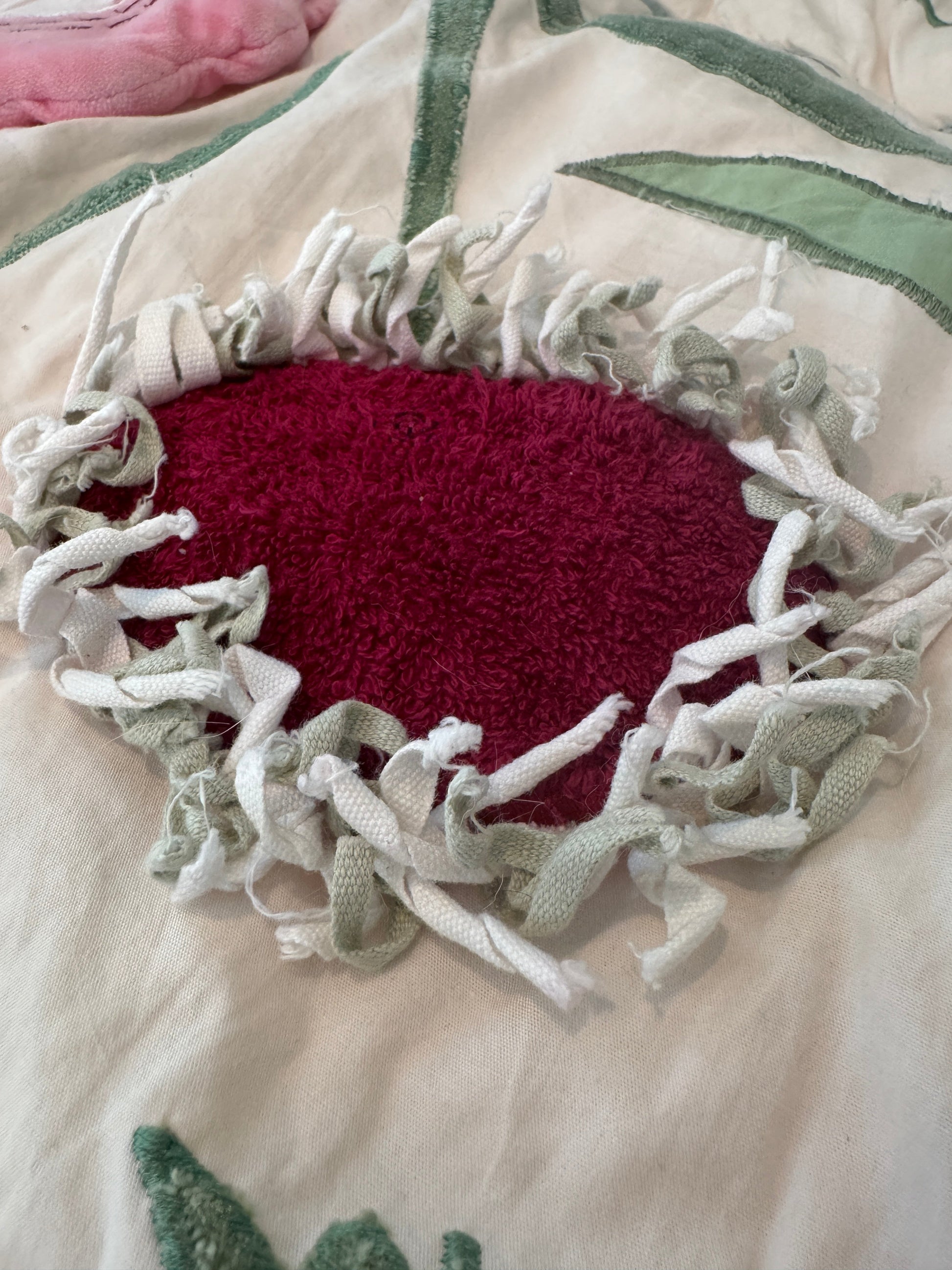 - Features tassels around edge of mat