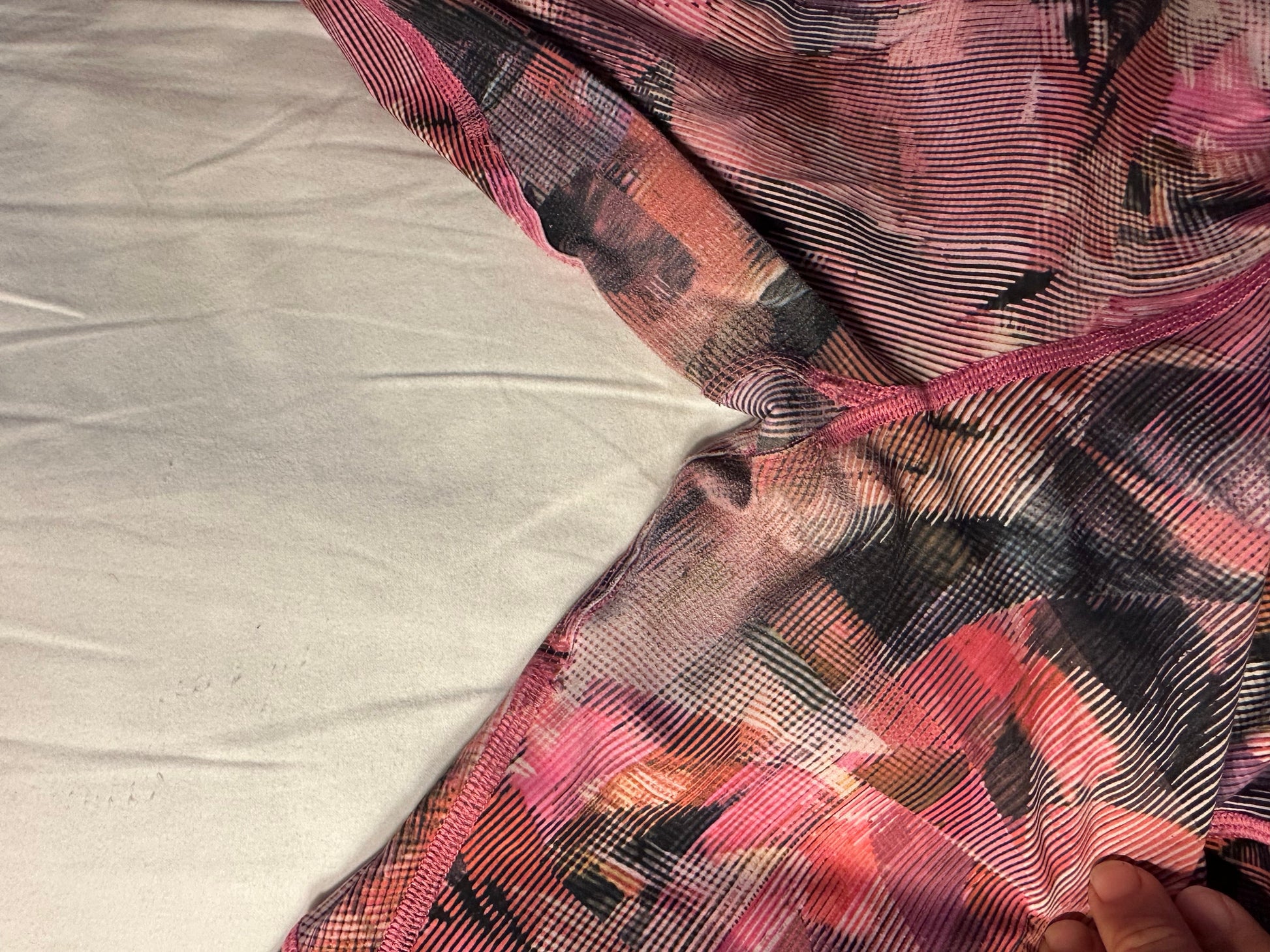 Fun lululemon pattern with mesh venting. Cropped with waist line control, pilling in crotch, priced accordingly