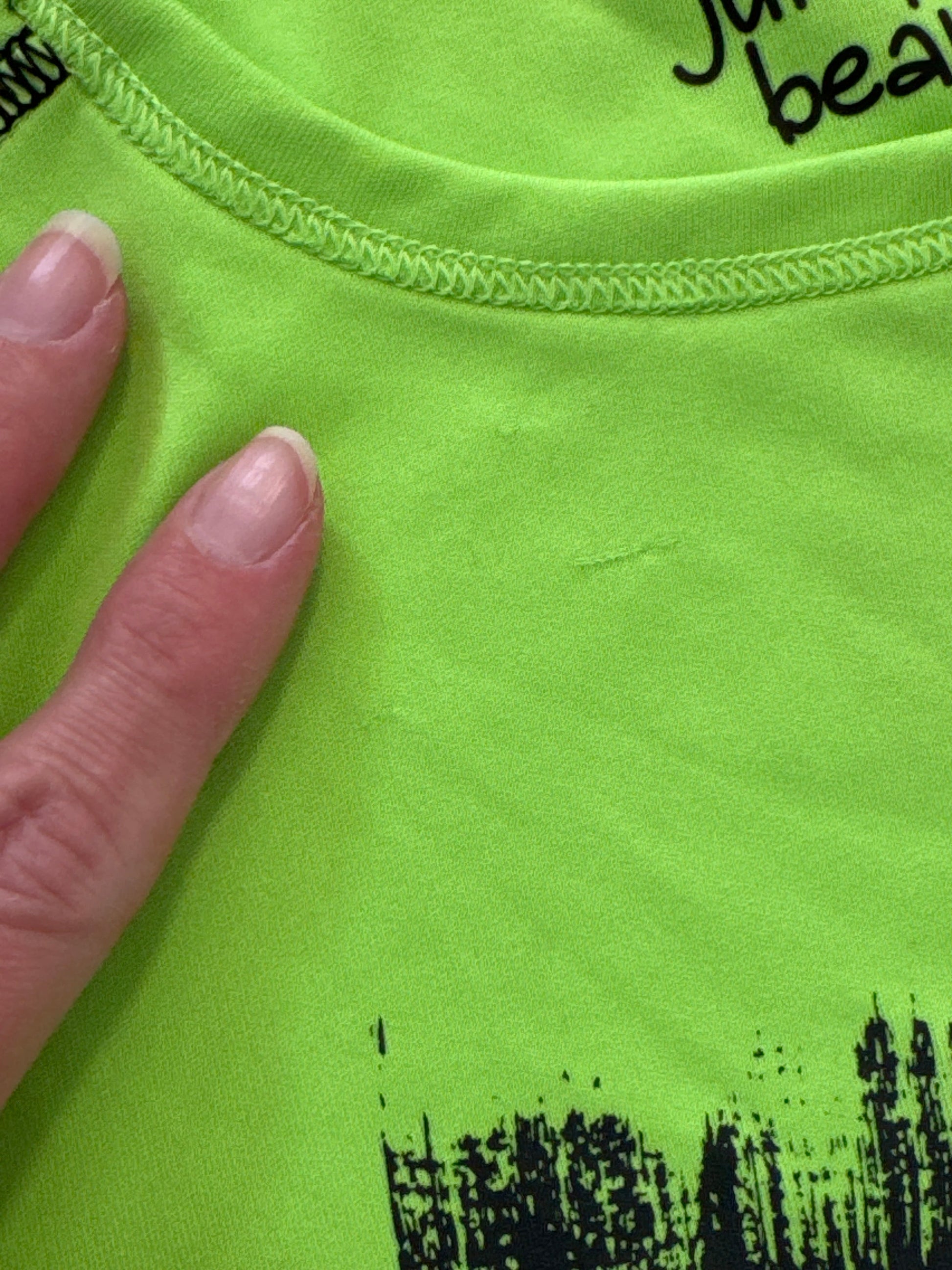 Boys Jumping beans 7 sports active top in lime green. Small fabric pull shown in close up.