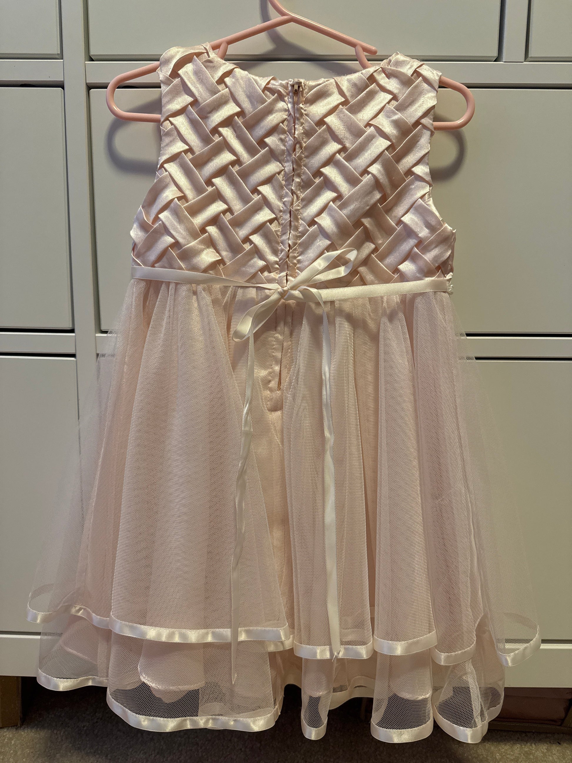 Girls Rare Editions size 3T pale pink satin dress with tulle and pearls. So pretty.