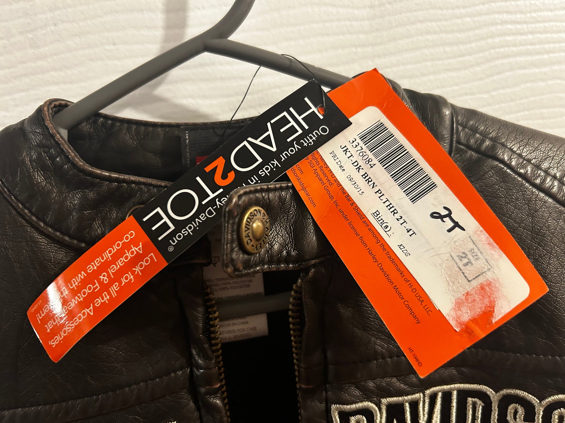 Harley Davidson, leather type material boys 2T jacket brand new with tags