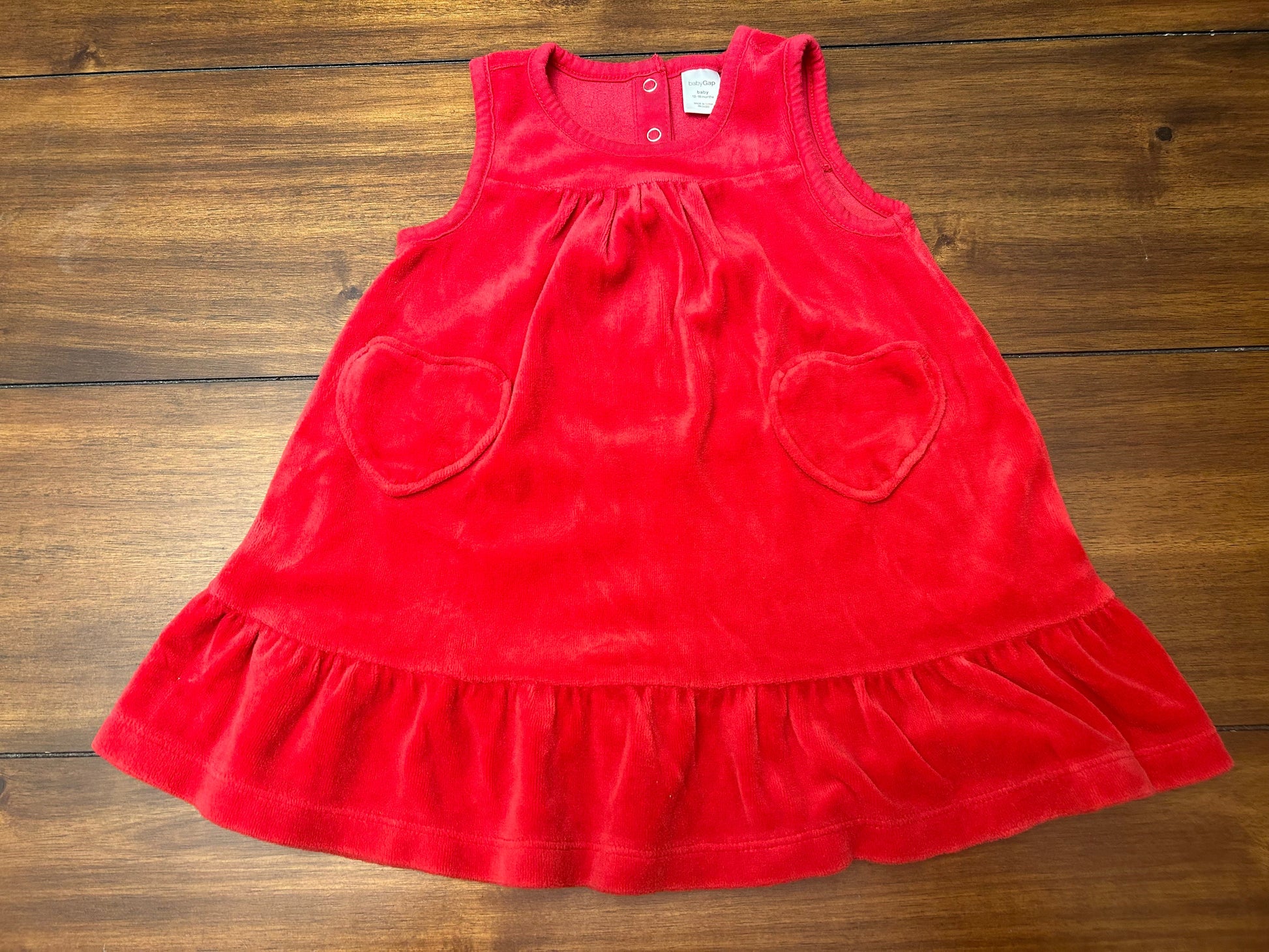 Seller #210 Baby Gap Girls Size 12-18M Red Velour Jumper Dress with Heart Pockets