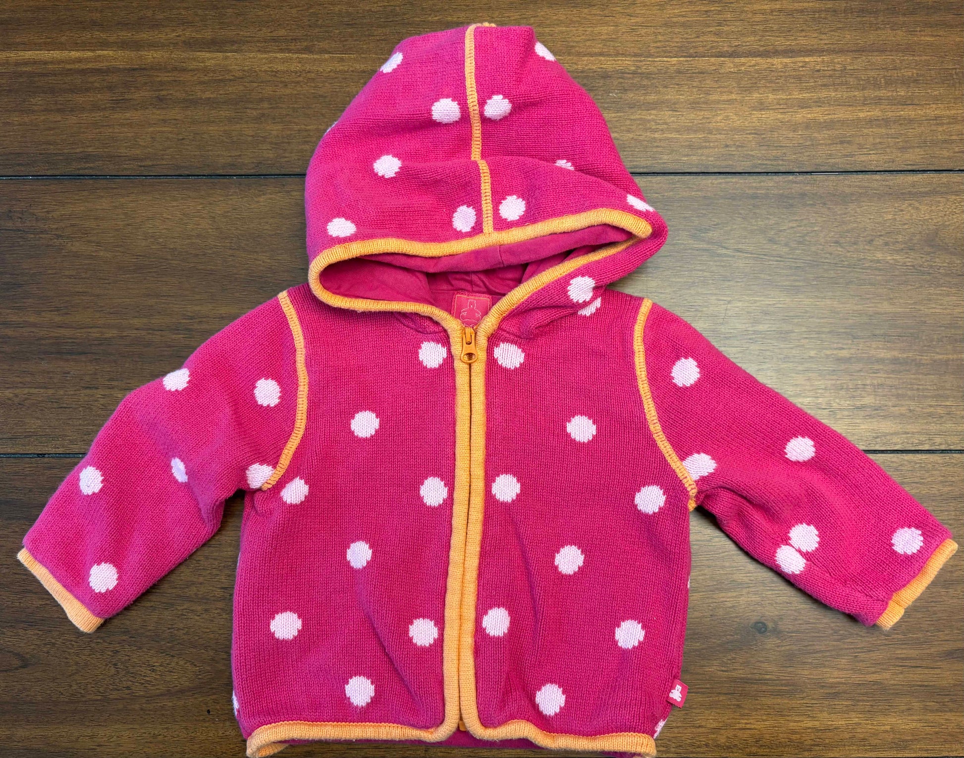 Seller #210 Baby Gap Girls Size 6-12M Hot Pink with White Polka Dots Hooded Sweater Jacket