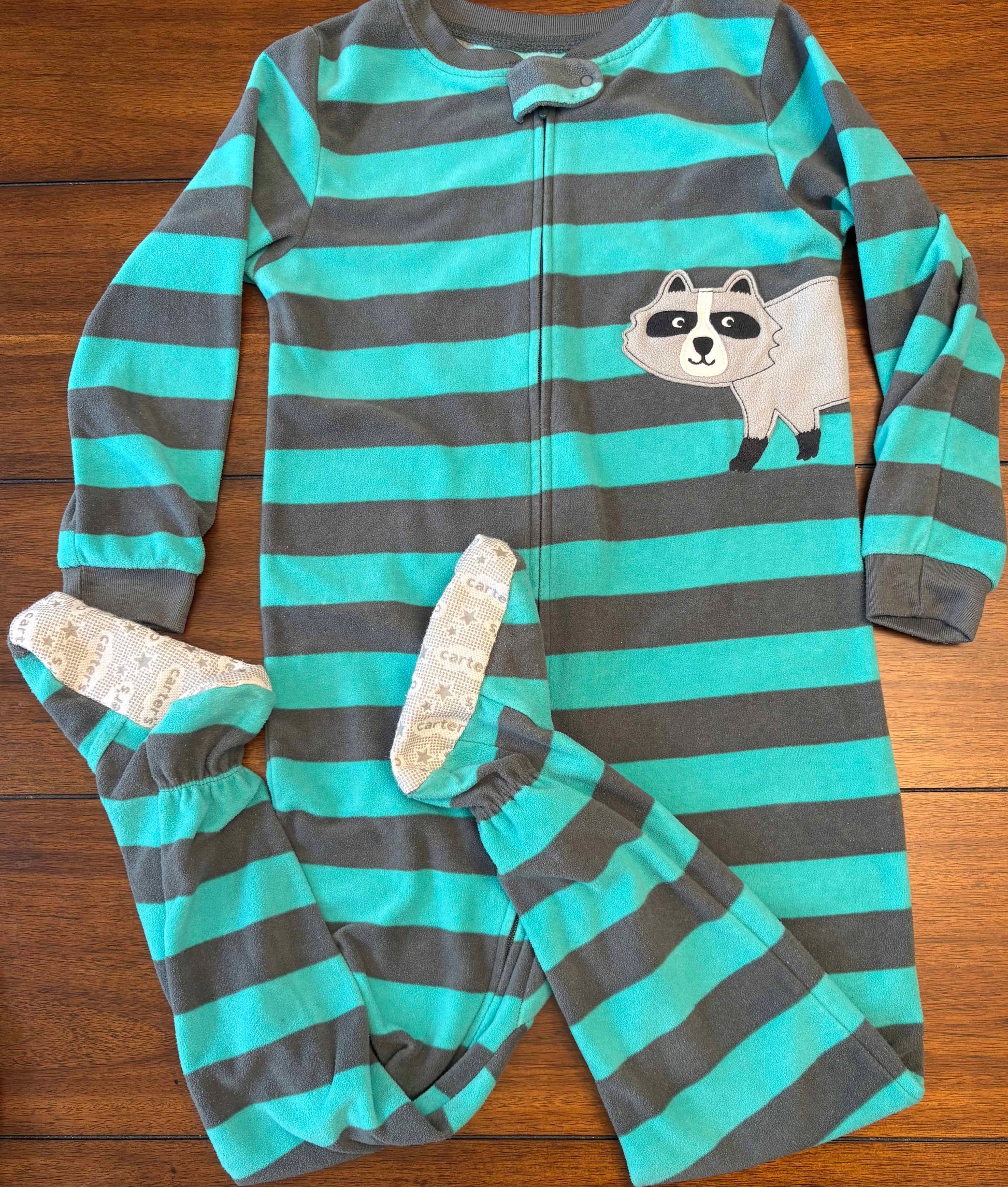 Seller #210 Carter's Boys Size 5T Aqua White & Blue Embroidered Fleece Footed Zipper Sleeper Bundle