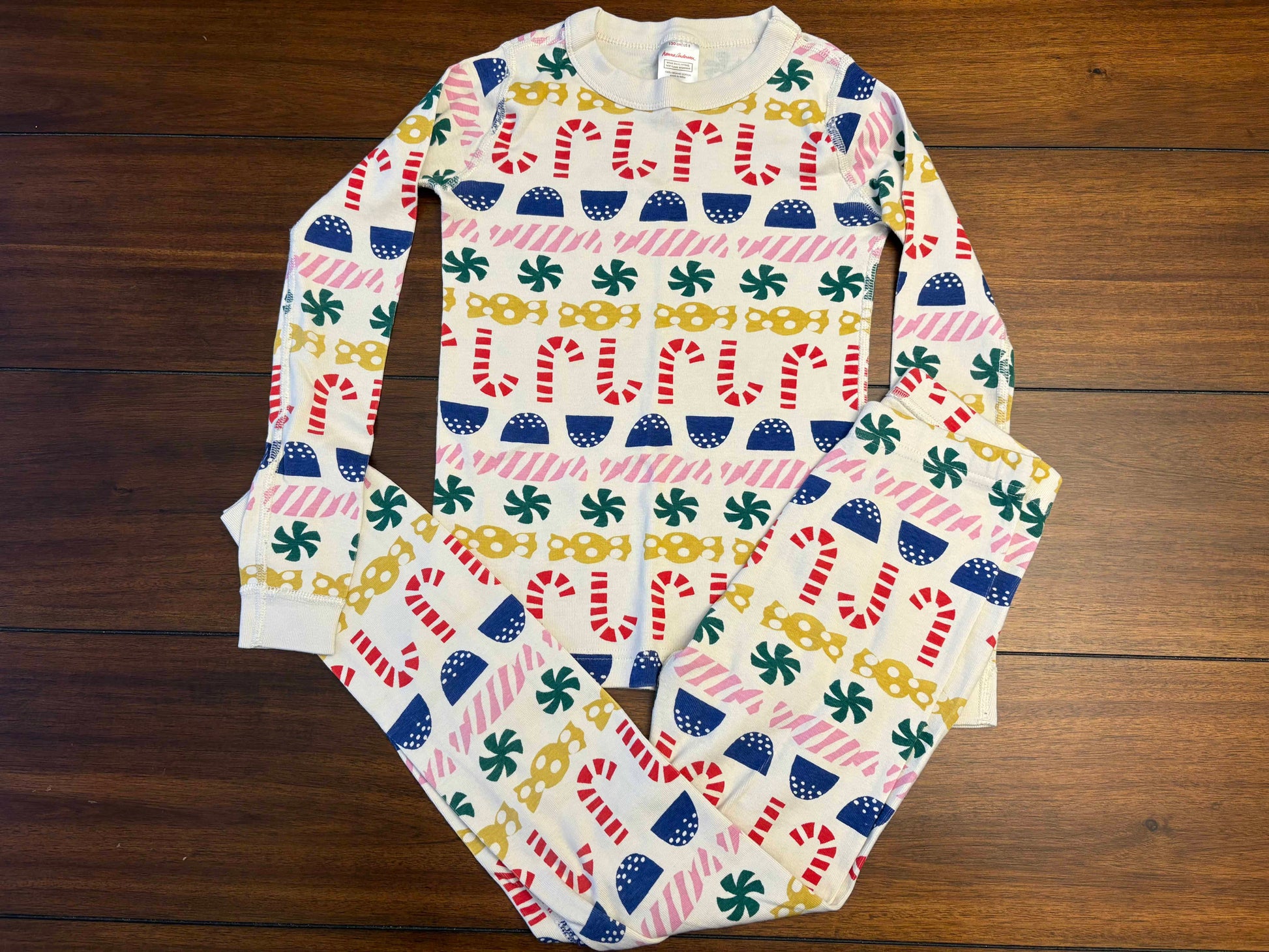 Seller #210 Hanna Andersson Unisex Size 8 (130) Cream Christmas Long Sleeve Top & Pants Pajama Set