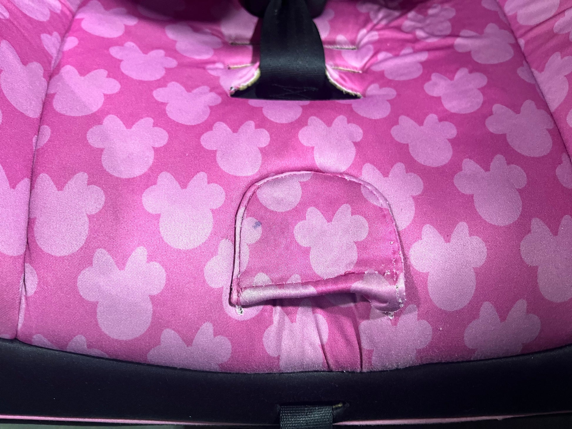 Minnie mouse car seat. Good condition. Small rip in fabric. It’s hard to notice because it lays flat. see attached photos. Look