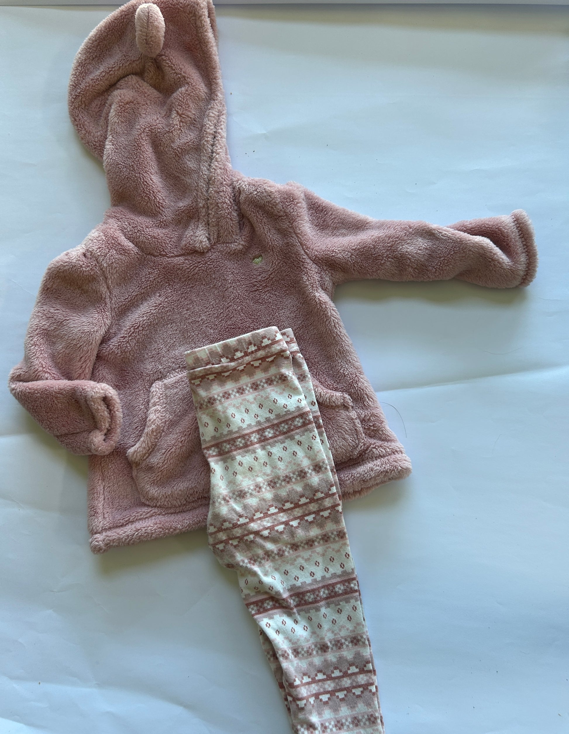 Carters 9 month outfit, fluffy pink sweatshirt with matching pants