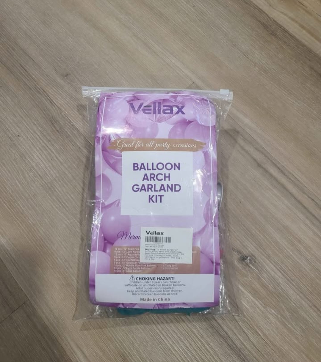 Unopened mermaid theme balloon arch. Purple, pink. Turquoise, and gold balloons included. See pictures for a visual on what this looks like set up.