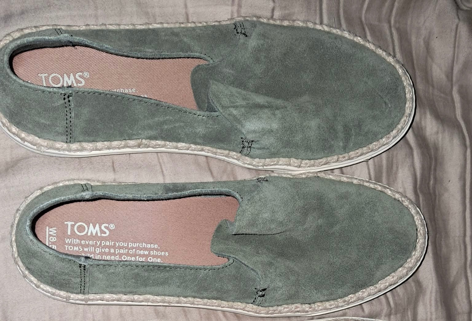 Seller #57 Womens 8.5 Green Suede Toms slide on shoes REDUCED