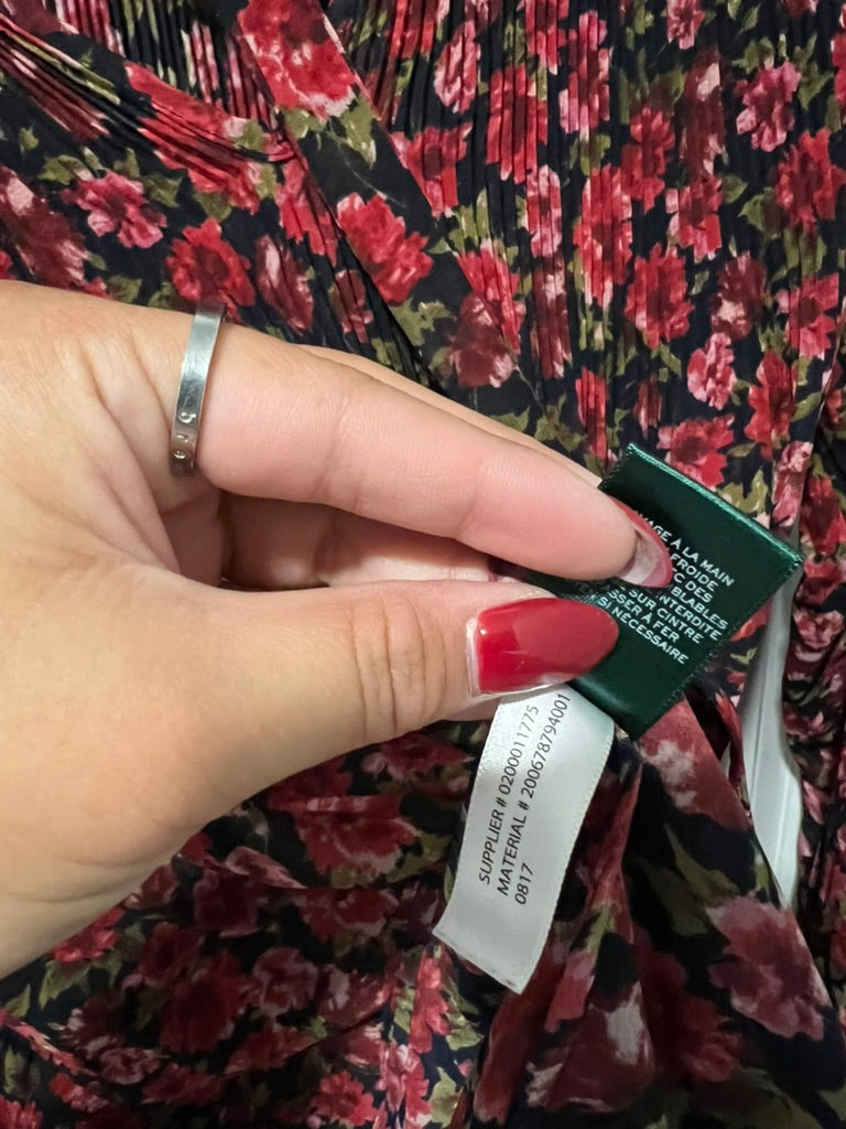 Seller #76 - Lauren Ralph Lauren Duong Sheer Pleated Tie-Neck Floral Long Sleeve Blouse XL